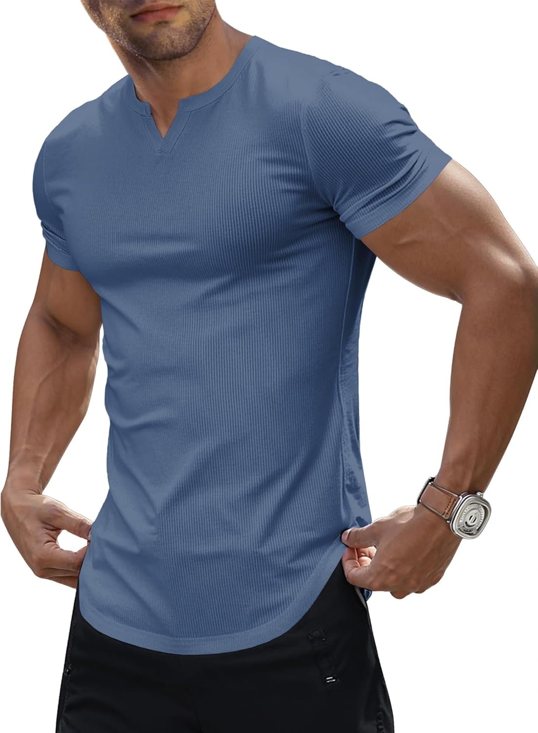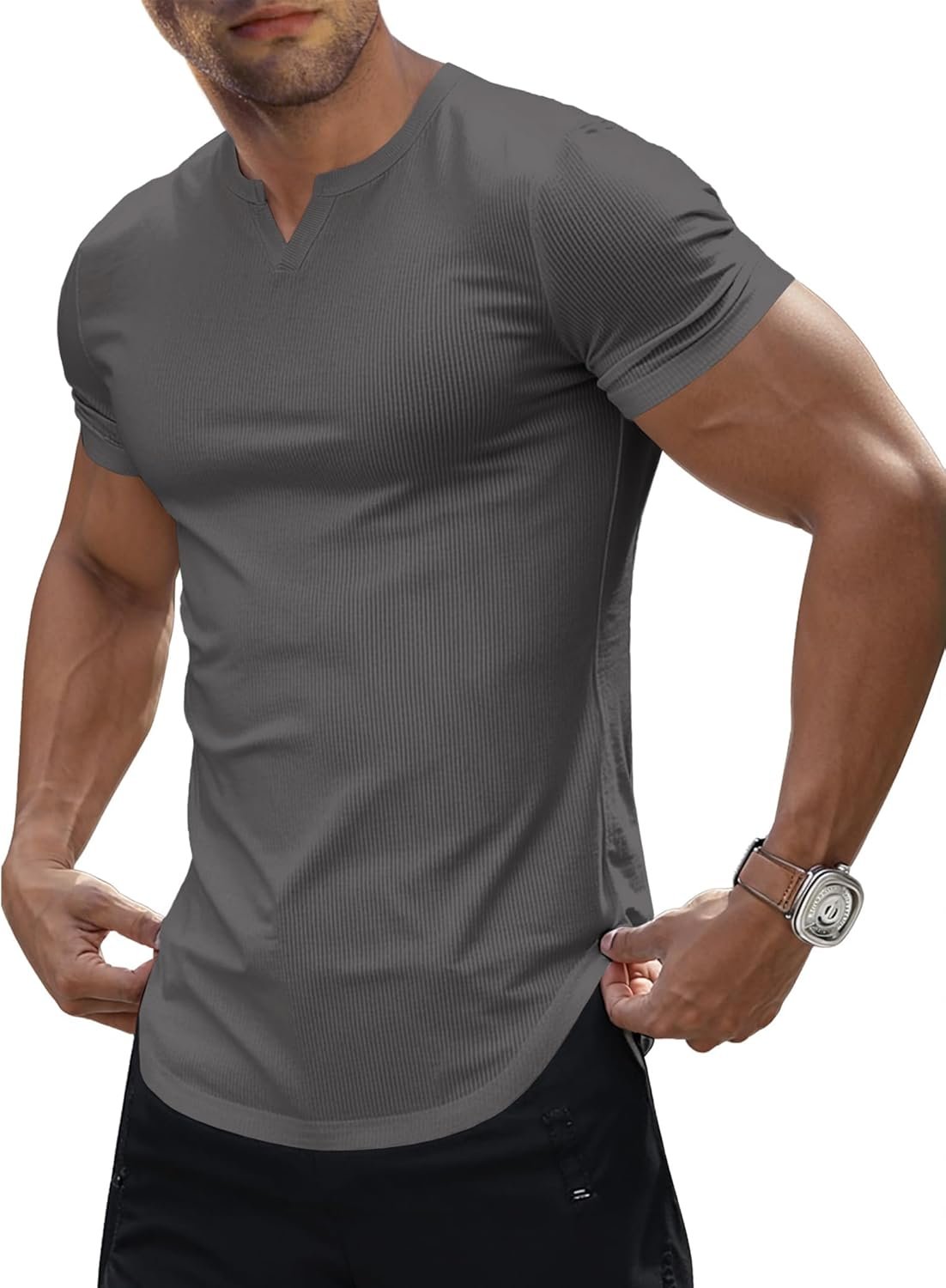 JMIERR Men’s Muscle V-Neck T Shirt Short Sleeve Longline Rib…