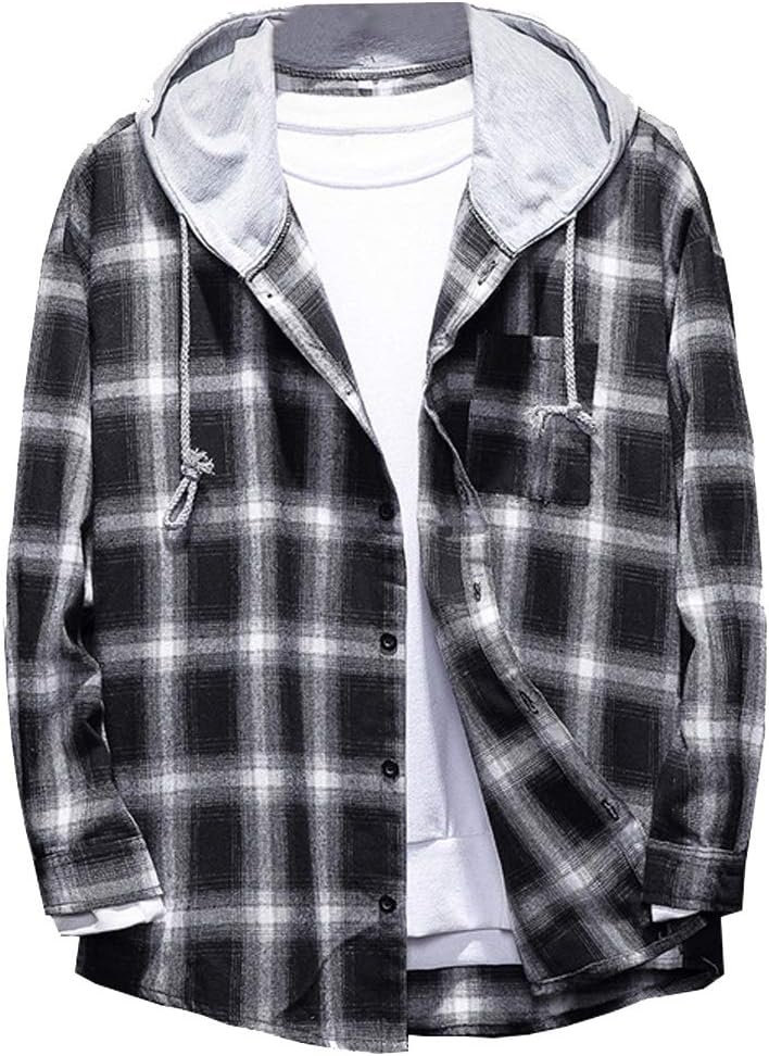 Lavnis Men’s Plaid Hooded Shirts Casual Long Sleeve Lightwei…