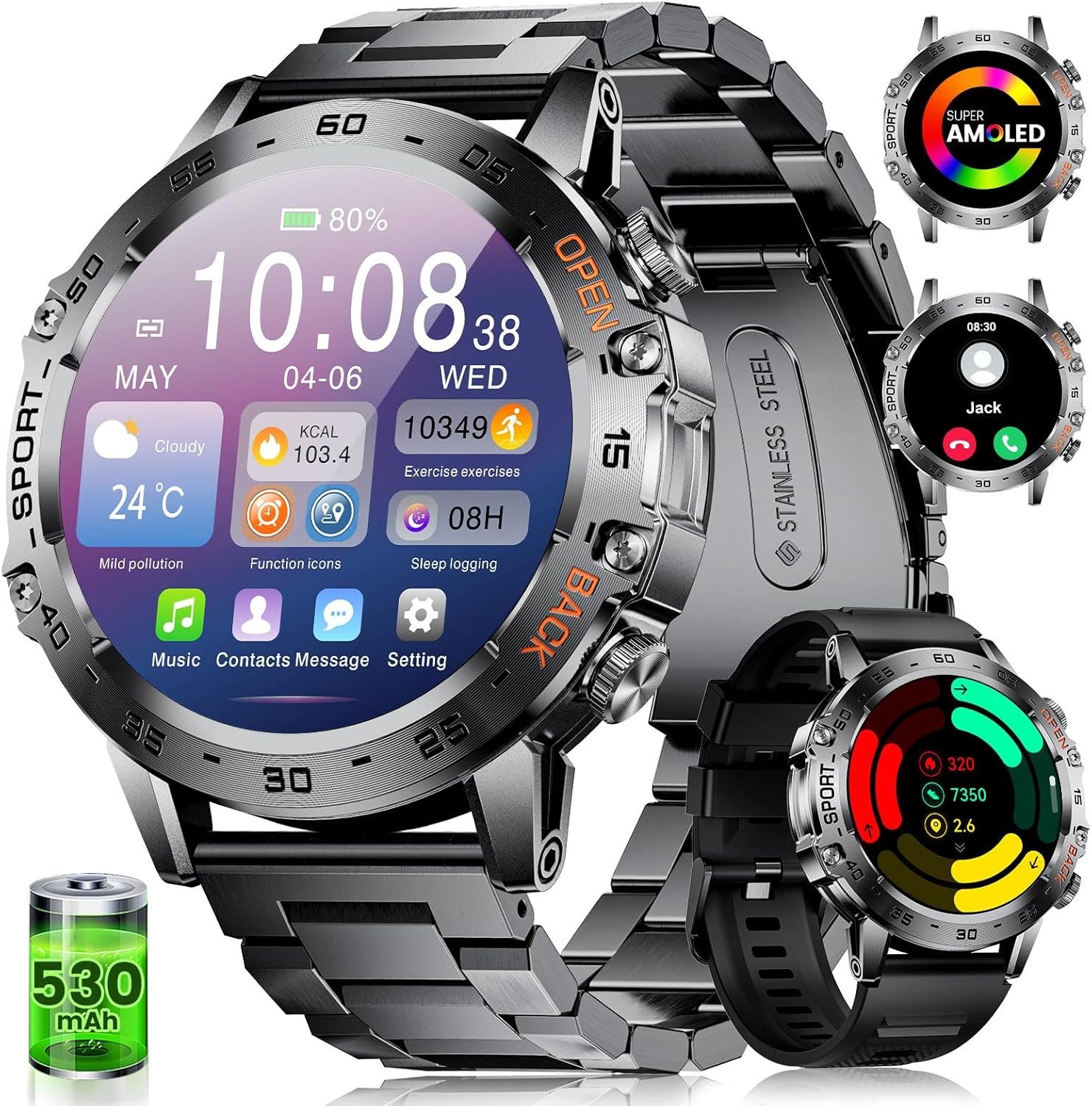 Military Smart Watch for Men(Answer/Dial Calls),1.45” AMOLE…