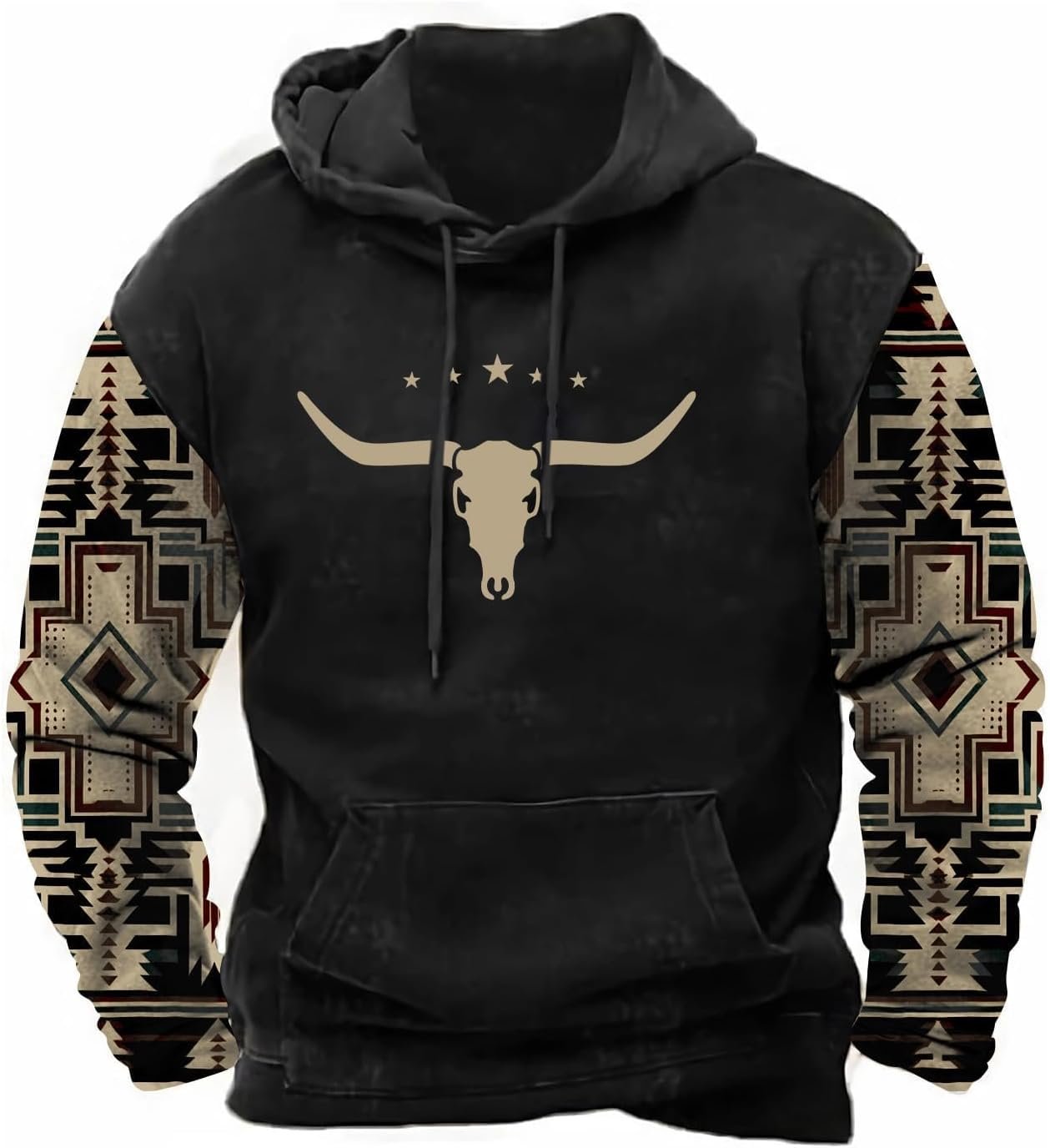 PORCLAY Mens Aztec Hoodie Western Cowboy Hooded Sweatshirt C…