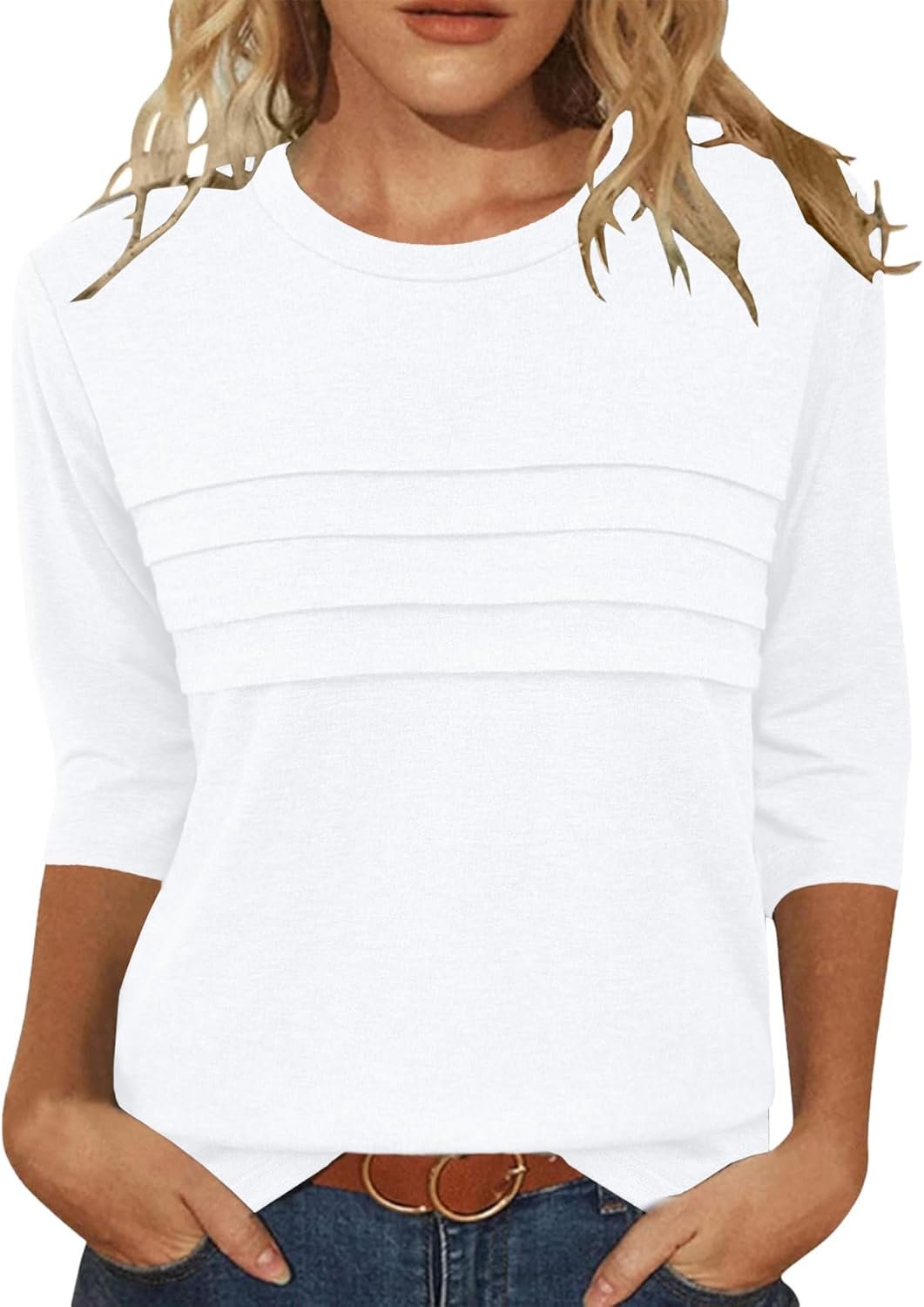 JomeDesign Womens Tops 3/4 Sleeve Shirts Round Neck Loose Ca…