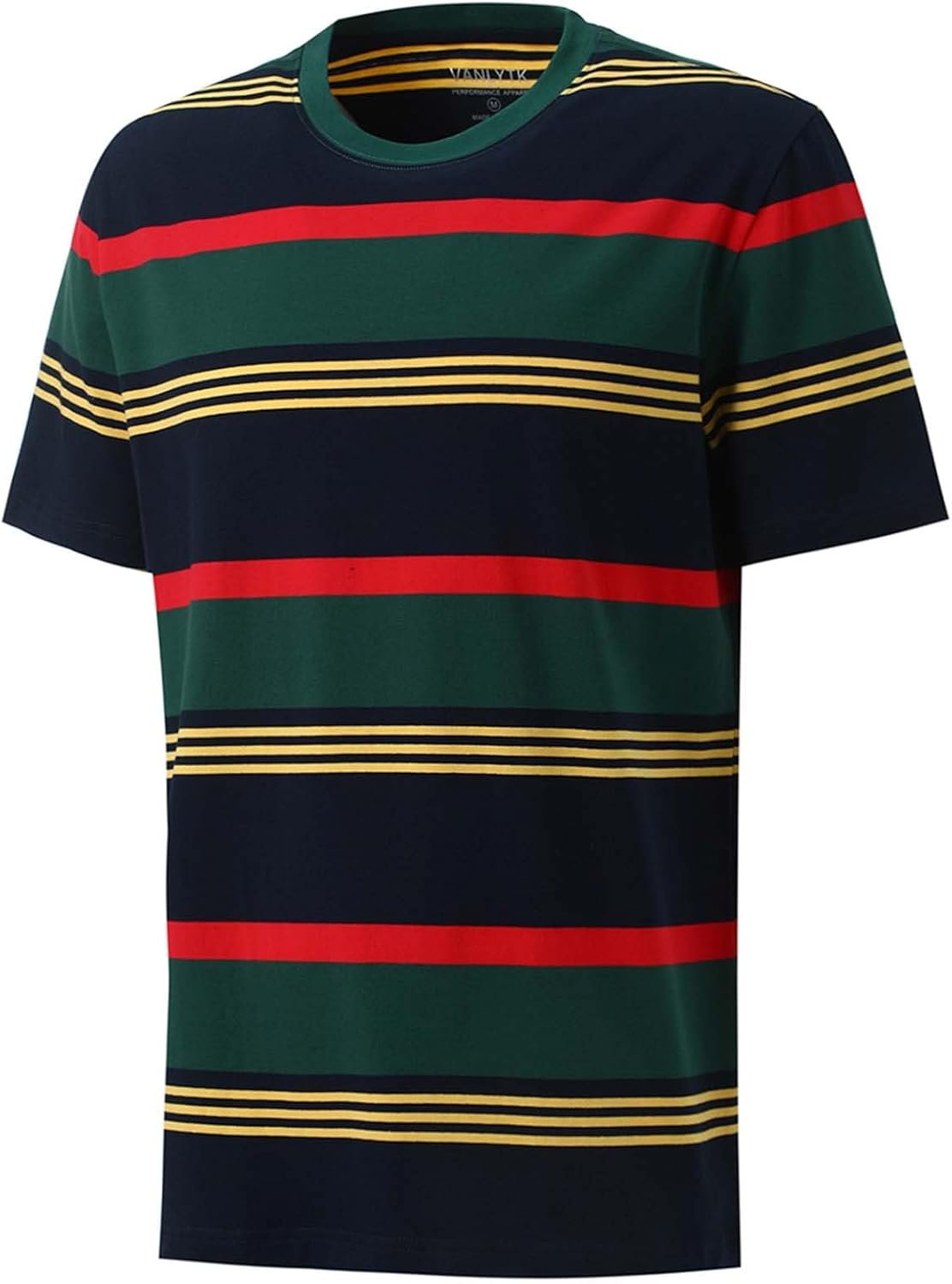 Men’s Fashion Casual Cotton Loose Fit Crewneck Classic Strip…