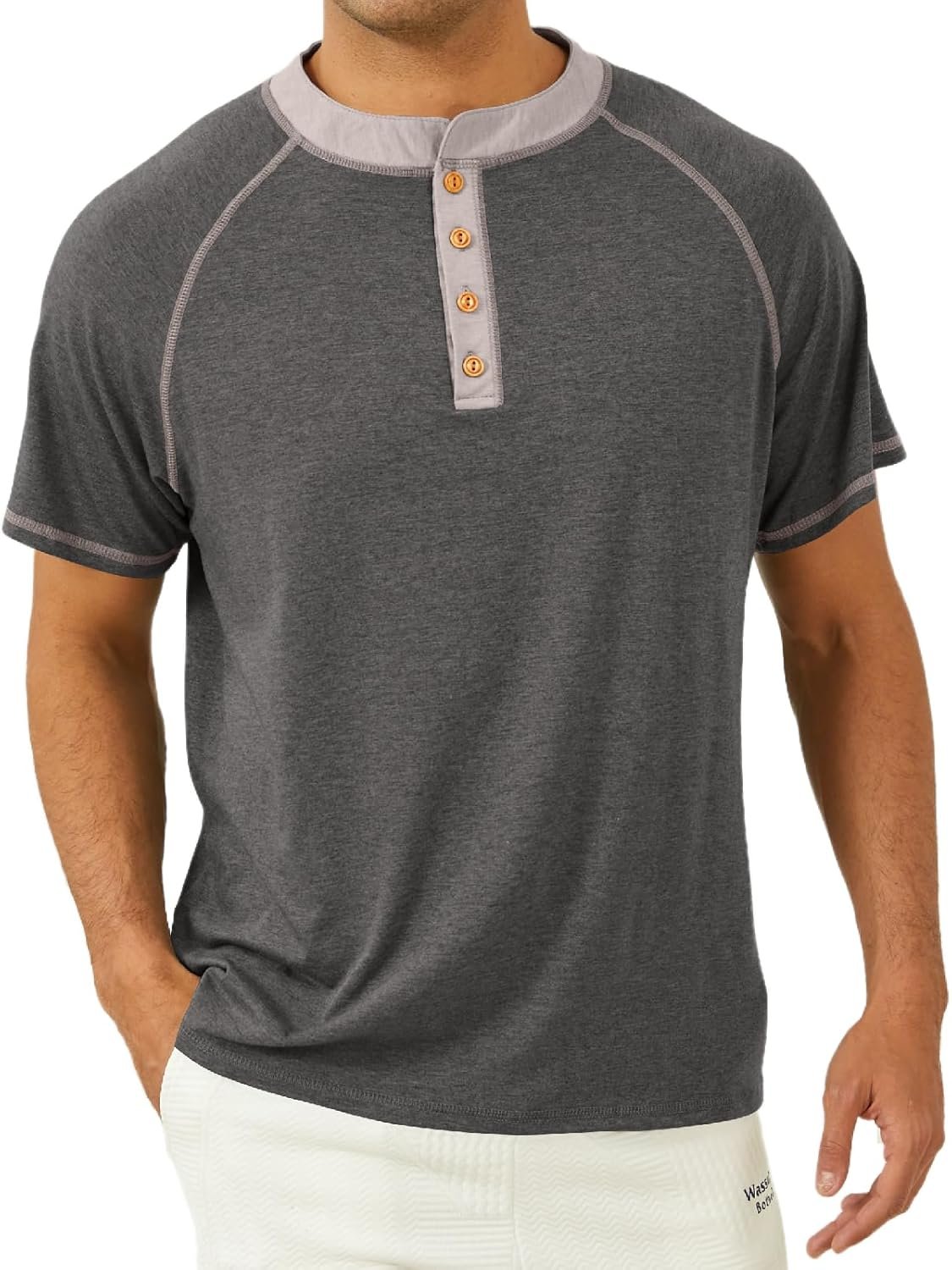 Mens Short Sleeve Henley Shirts Casual Button Tee Shirts Bas…