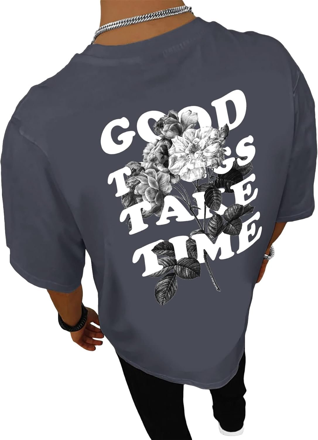 GORGLITTER Men’s Novelty Casual Letter Graphic Crewneck T-Sh…