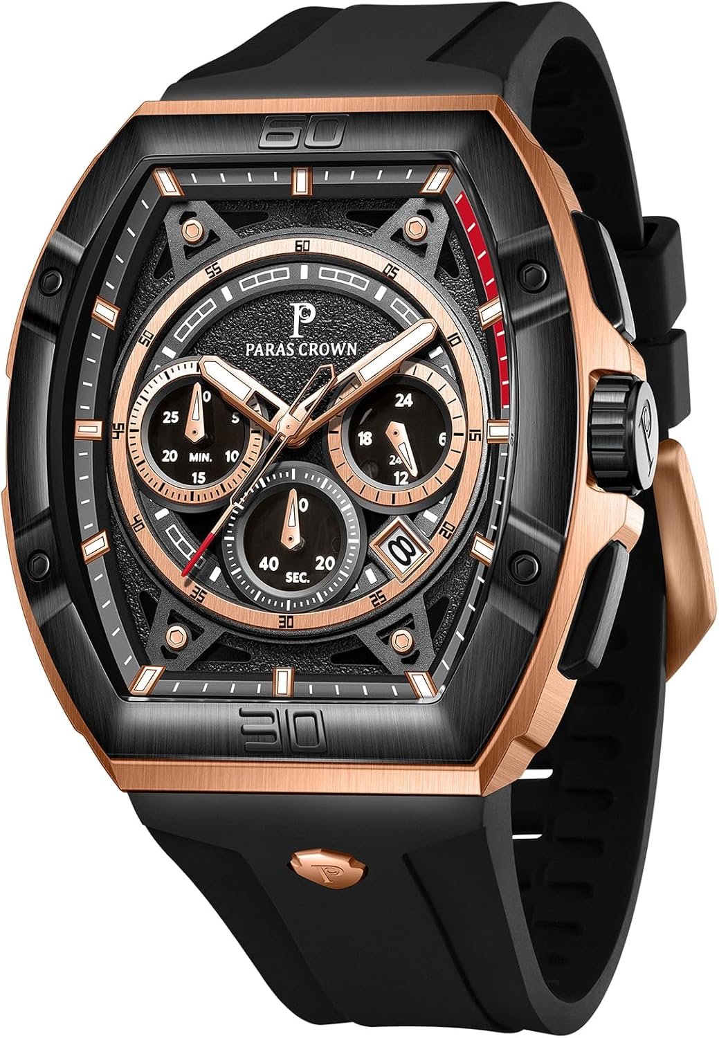 Paras Crown Watches for Men Tonneau 5ATM Waterproof Quartz L…