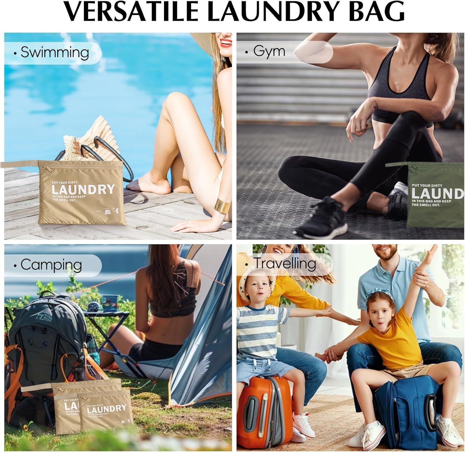 Versatile Laundry Bag: Designed for your travel needs, these laundry bags offer an effective solution for stowing away dirty and wet clothes. Whether you are out for a sports event, gym, swimming, or camping, never worry about where to put your soiled clothes.