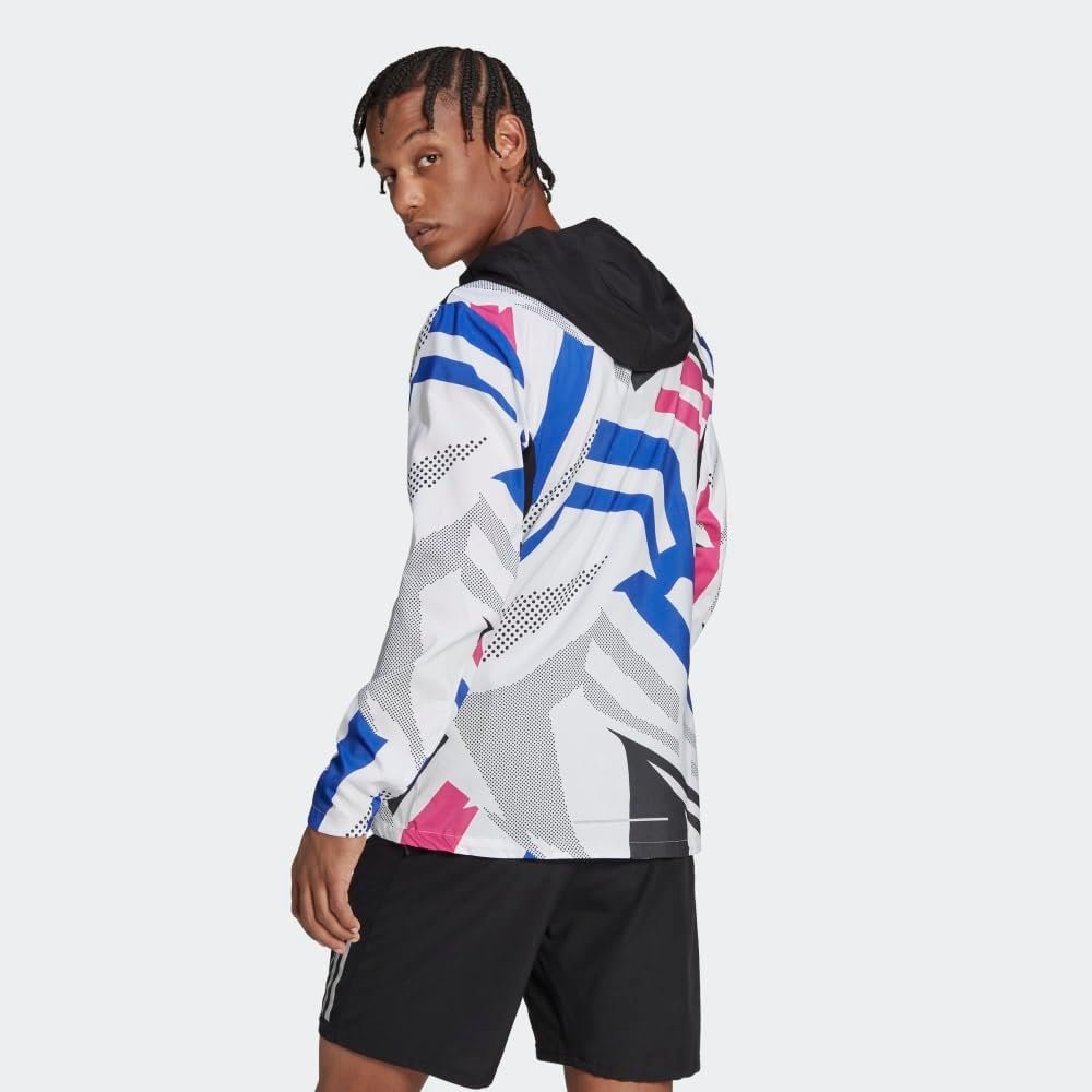 Write an article in French about: adidas Men’s Own The Run Seasonal Jacket, Black/White/Lucid … In English