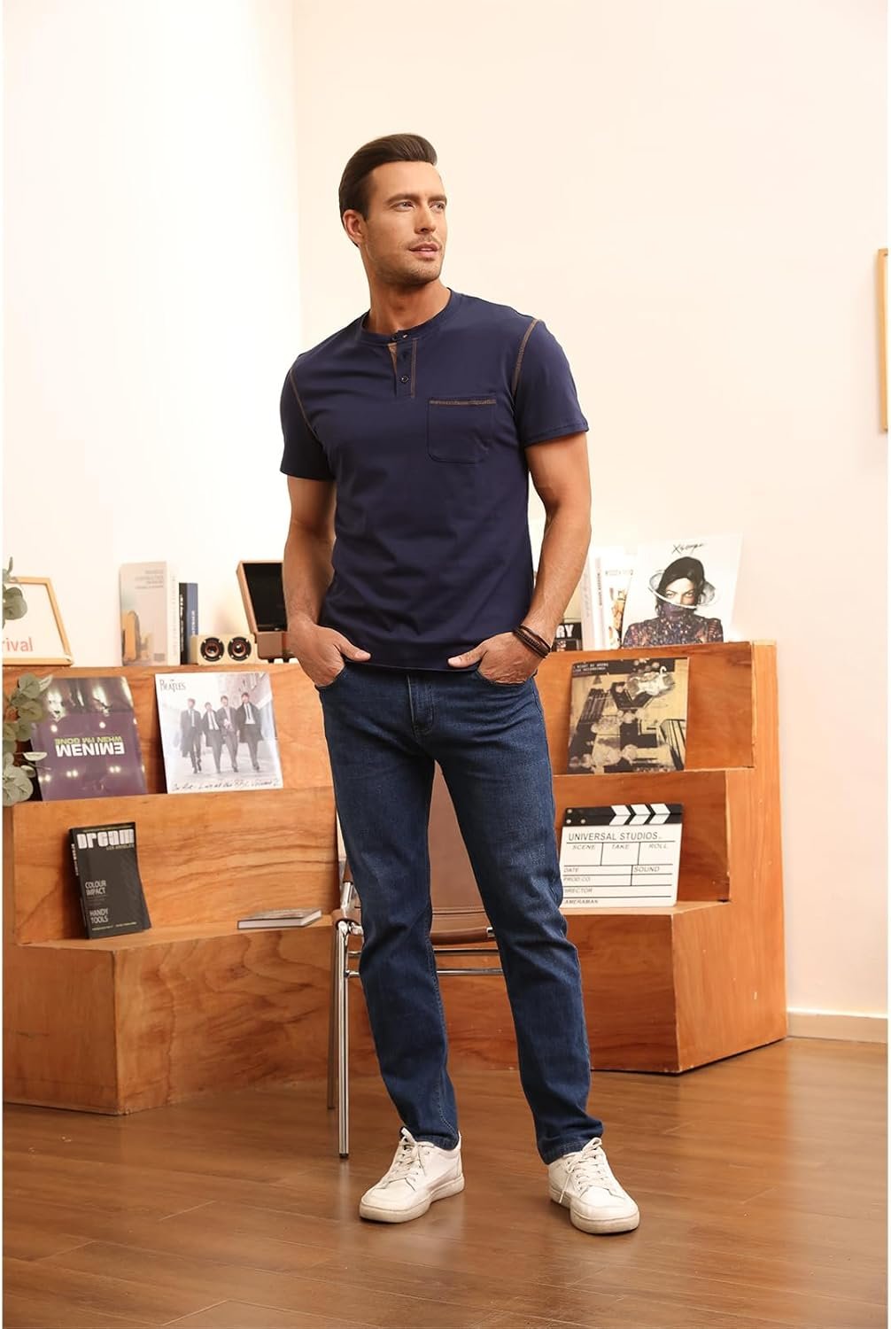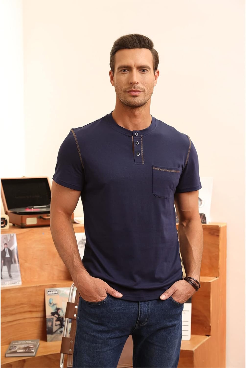 Write an article in French about: Aulemen Men’s Henley Shirts Short Sleeve Casual Lightweight … In English