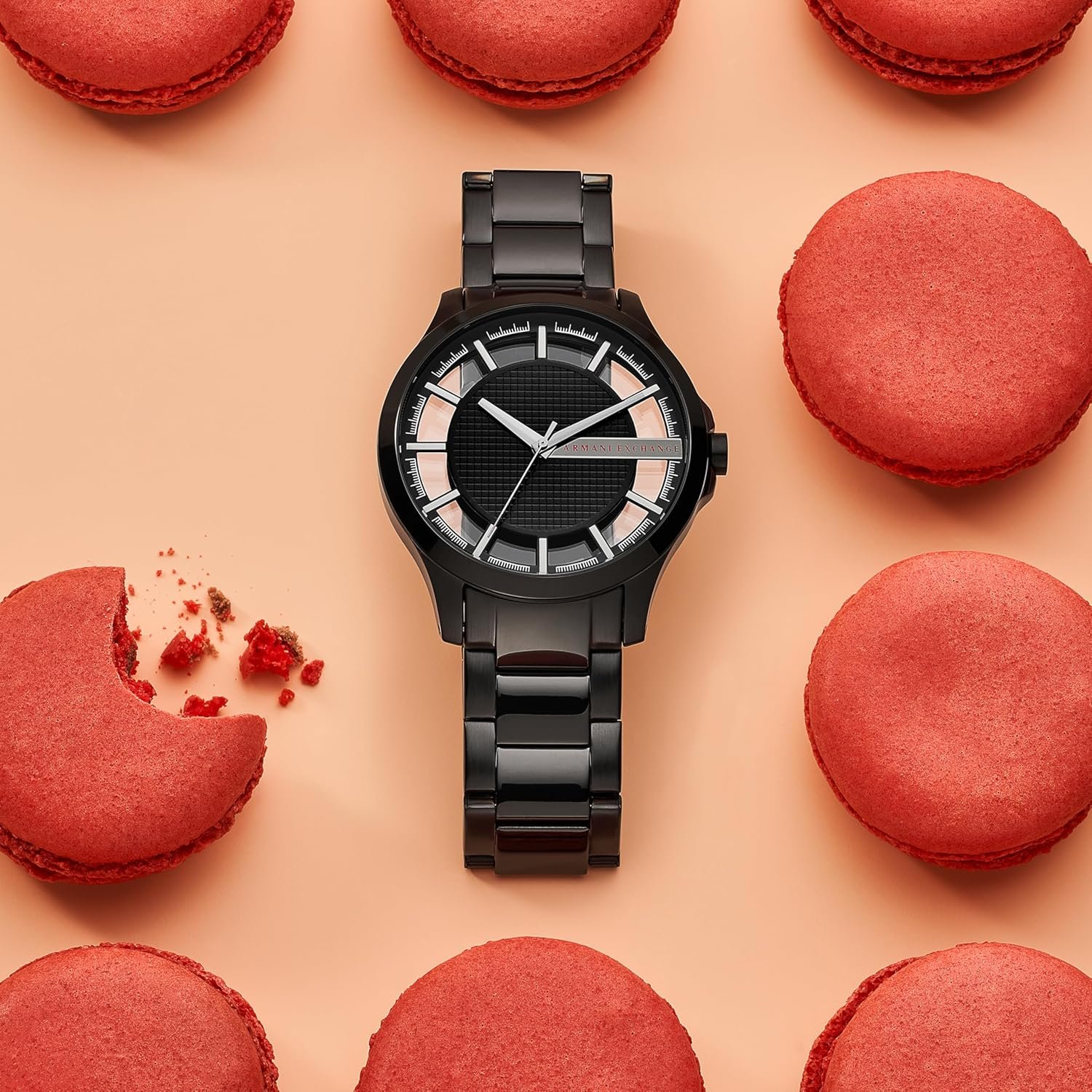 Write an article in French about: A|X Armani Exchange Men’s Three-Hand Black Stainless Steel W… In English