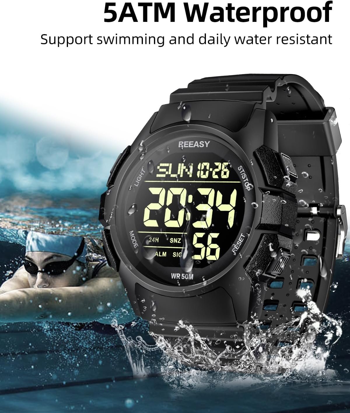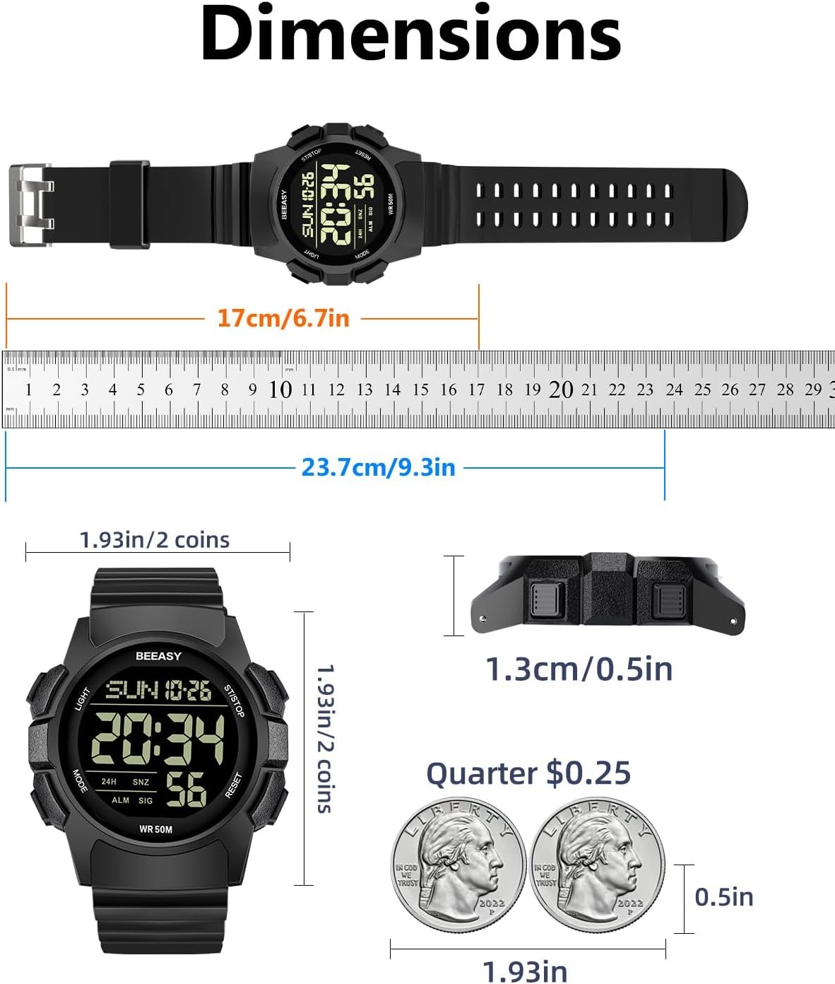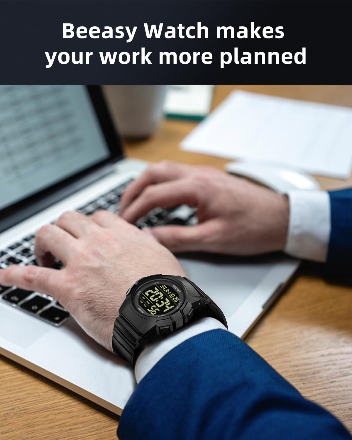 Beeasy Men Digital Sports Watch,Waterproof Watch with Stopwa…