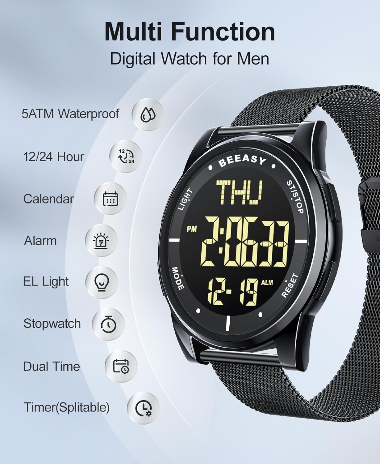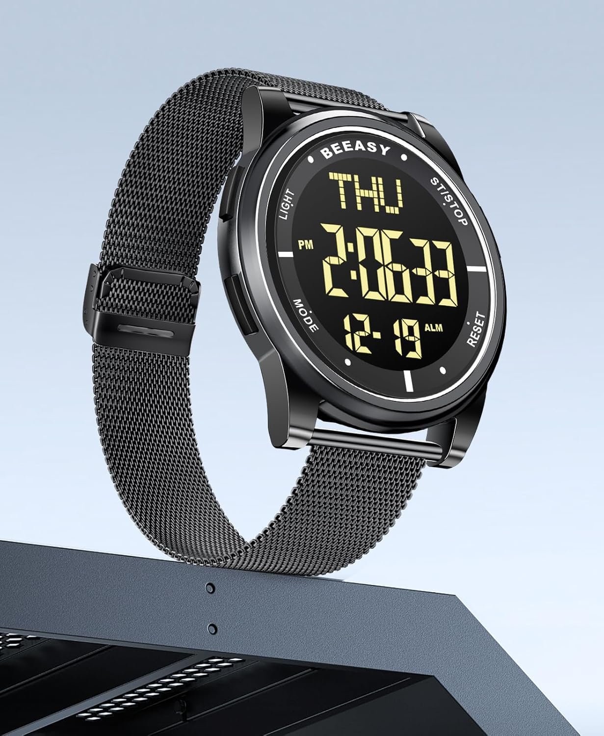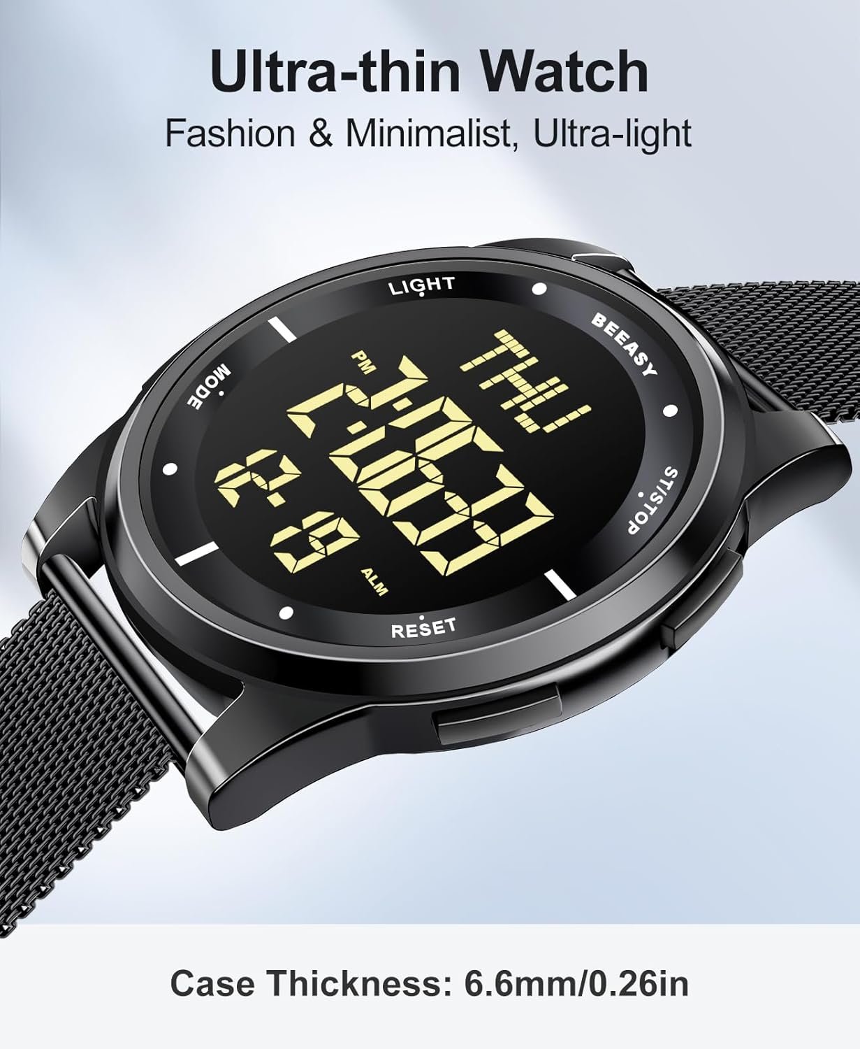 Write an article in French about: Beeasy Unisex Digital Watch Fashion Sleek Minimalist Mesh St… In English