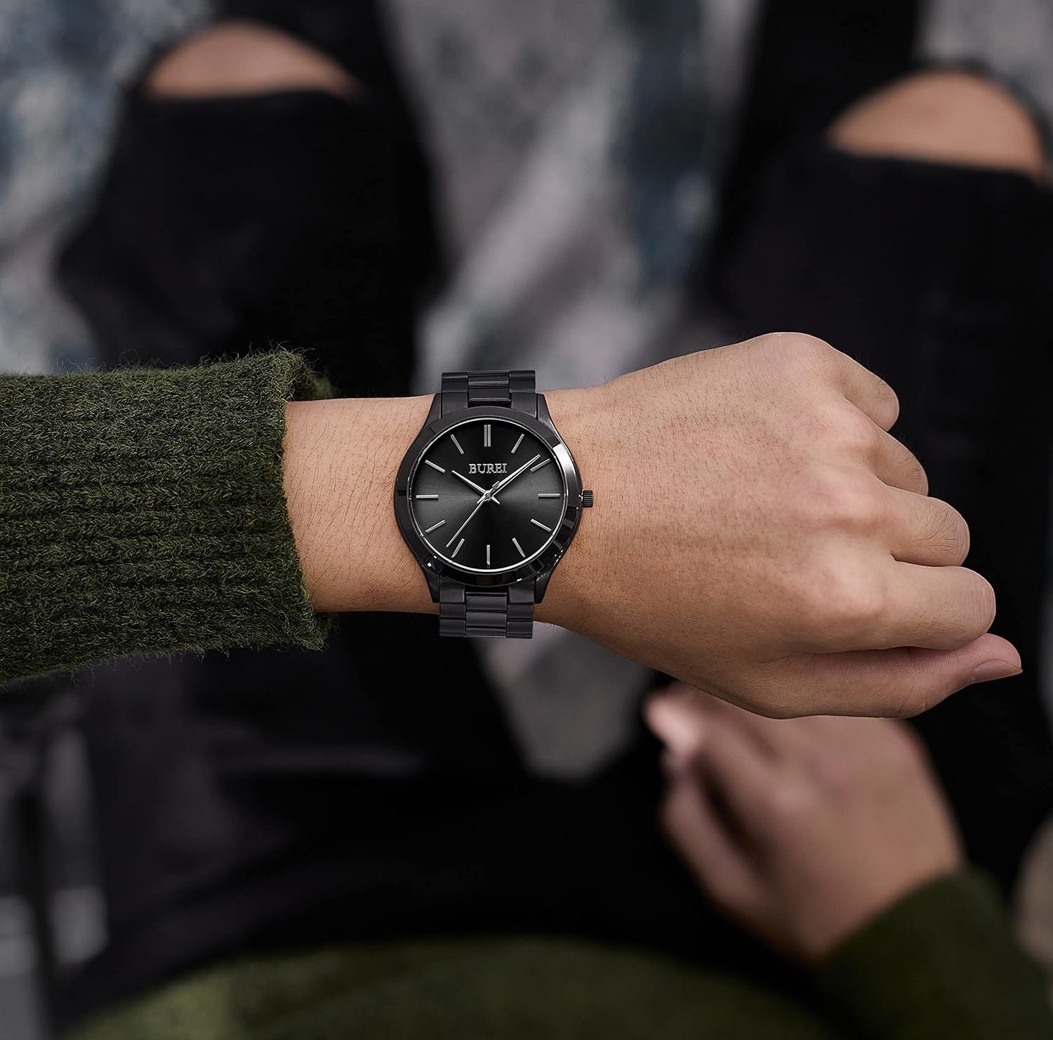 Write an article in French about: BUREI Men Watches Fashion Analog Stainless Steel Quartz Wate… In English