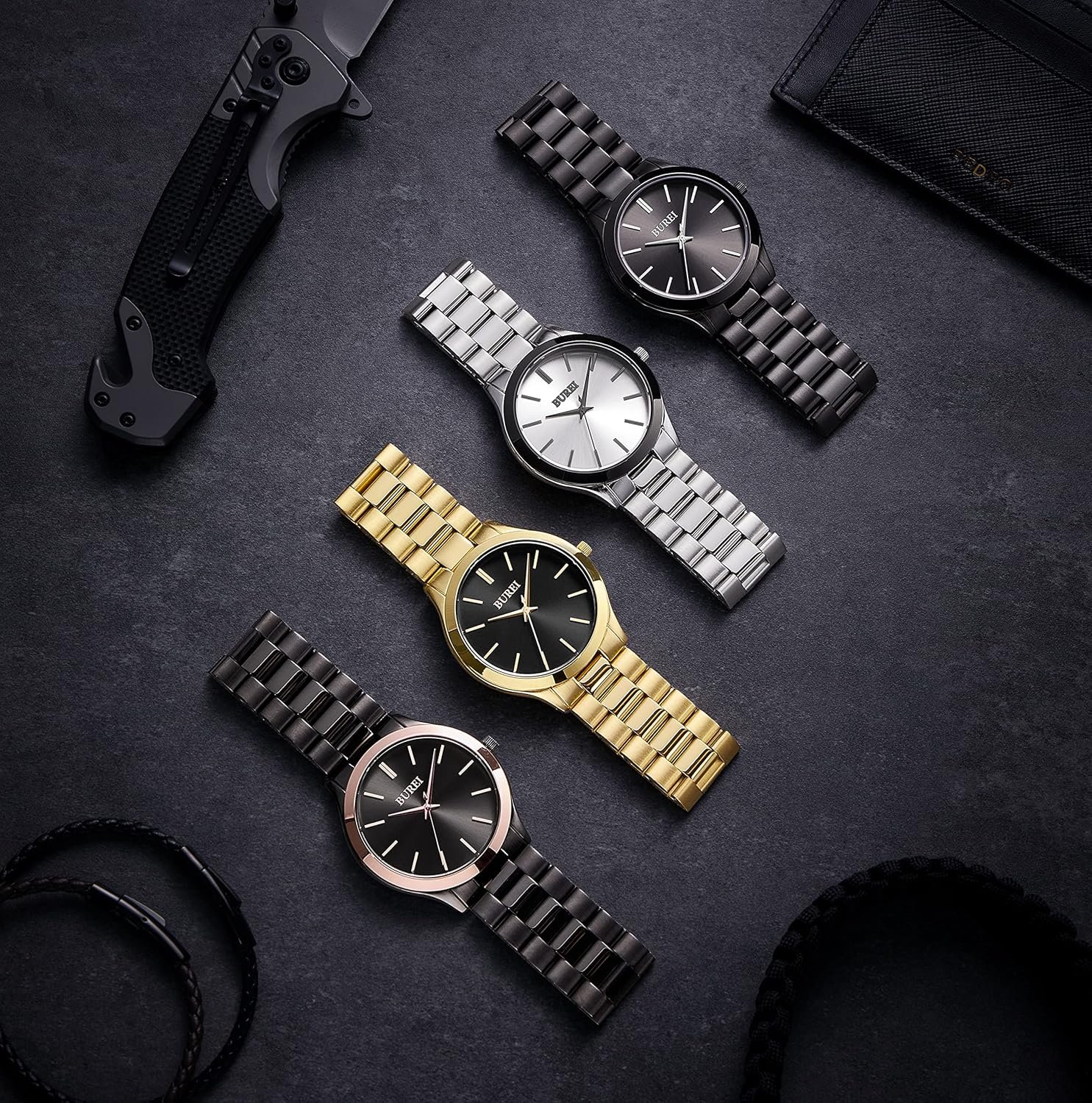 BUREI Men Watches Fashion Analog Stainless Steel Quartz Wate…