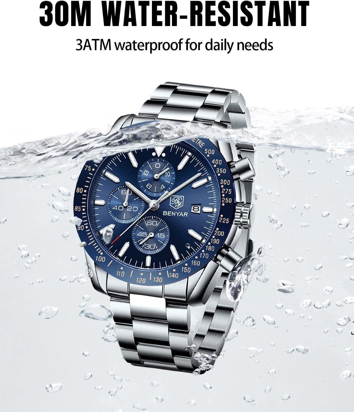 Write an article in French about: BY BENYAR Watch for Men Analog Quartz Chronograph Waterproof… In English