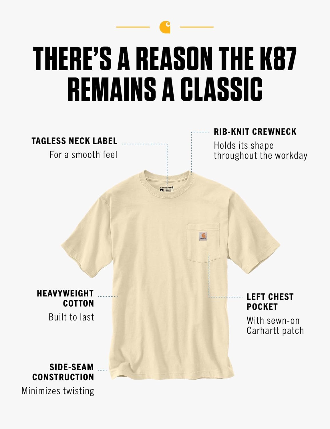 Write an article in French about: Carhartt Men’s Loose Fit Heavyweight Short-Sleeve Pocket T-S… In English