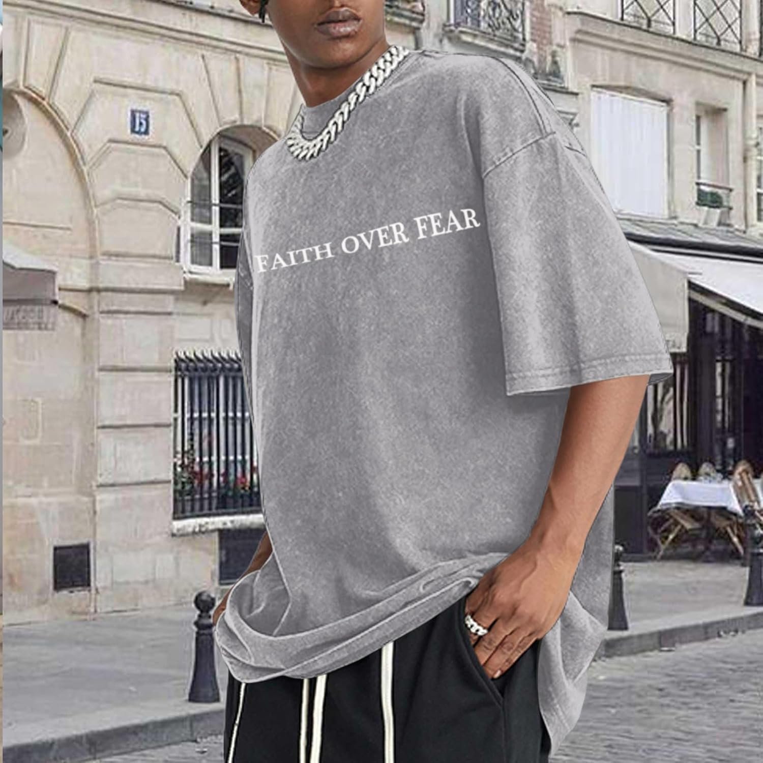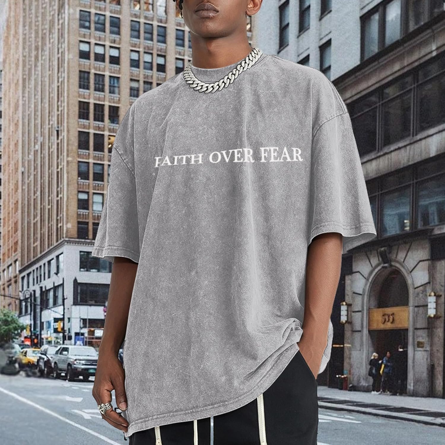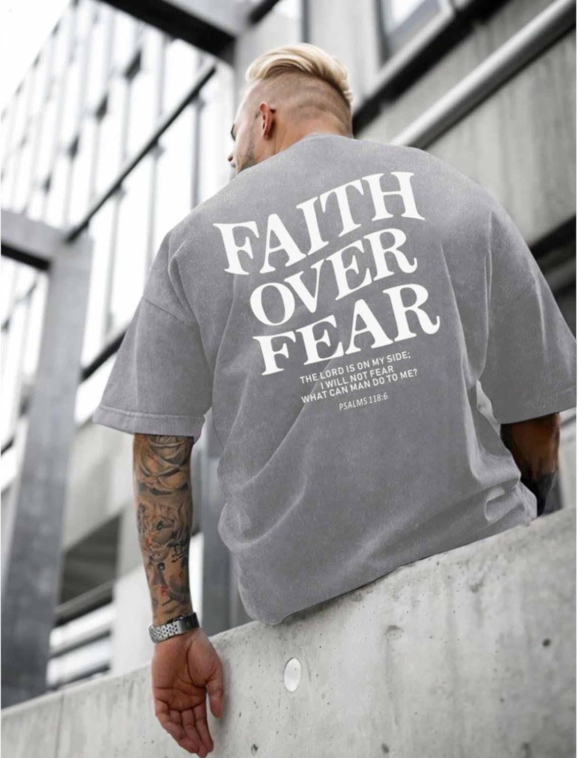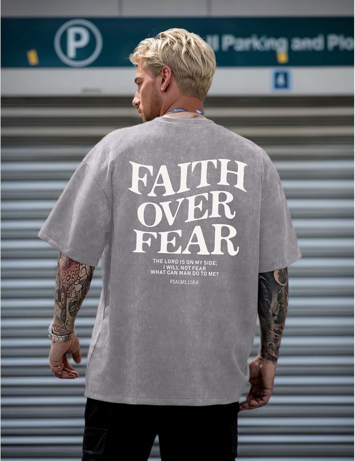 Christian Faith Over Fear Shirt for Men Jesus Religious Shir…