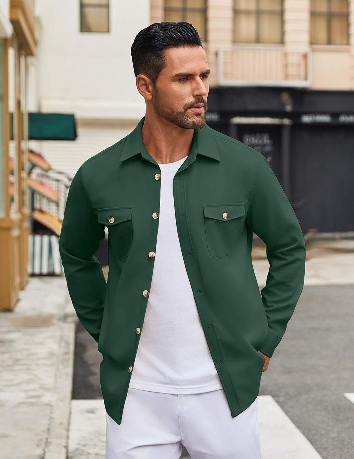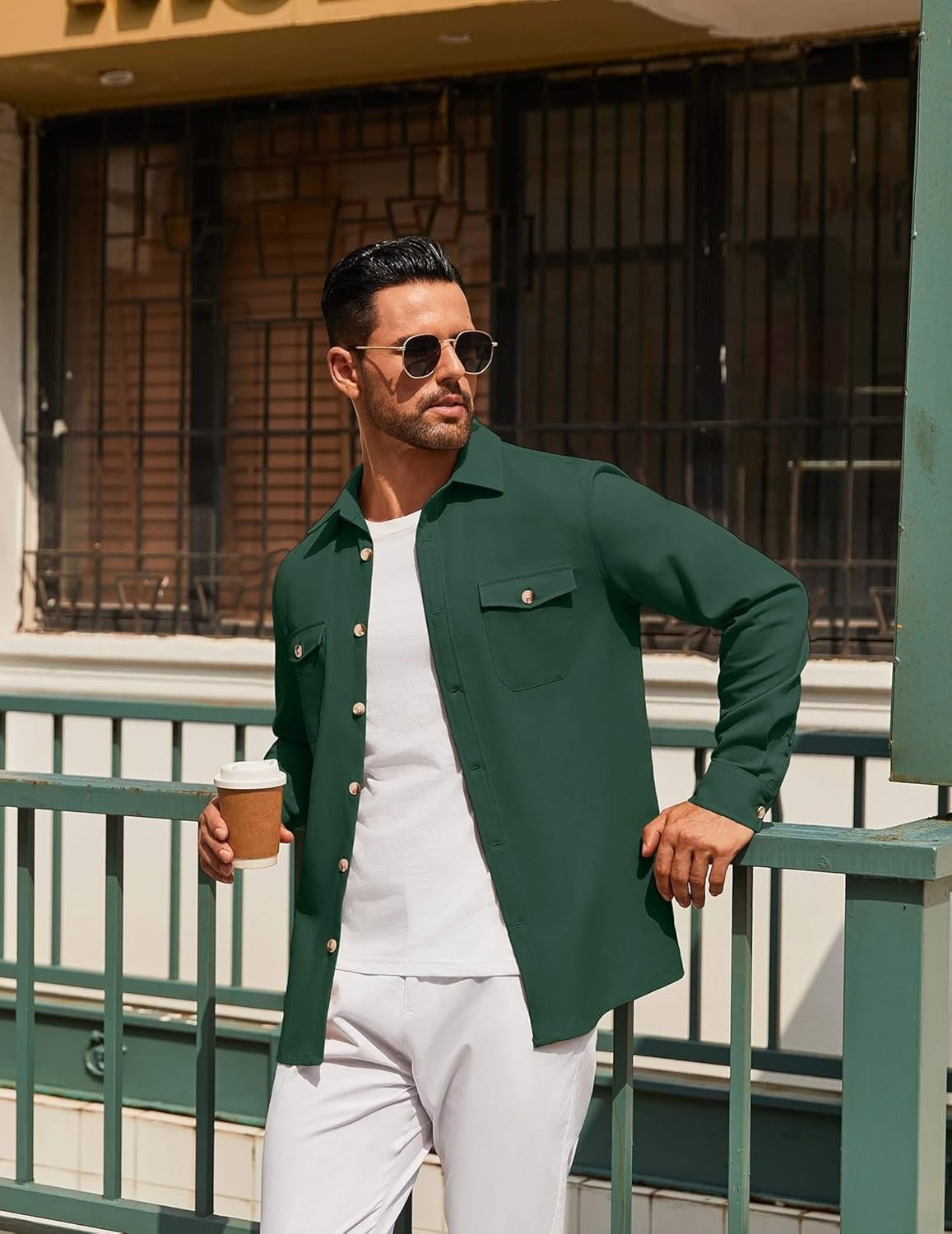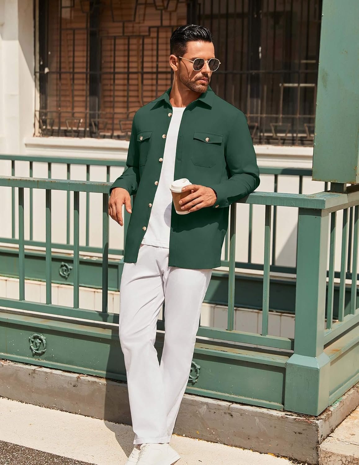 Write an article in French about: COOFANDY Men’s Casual Shirt Jacket Linen Button Down Shirt L… In English