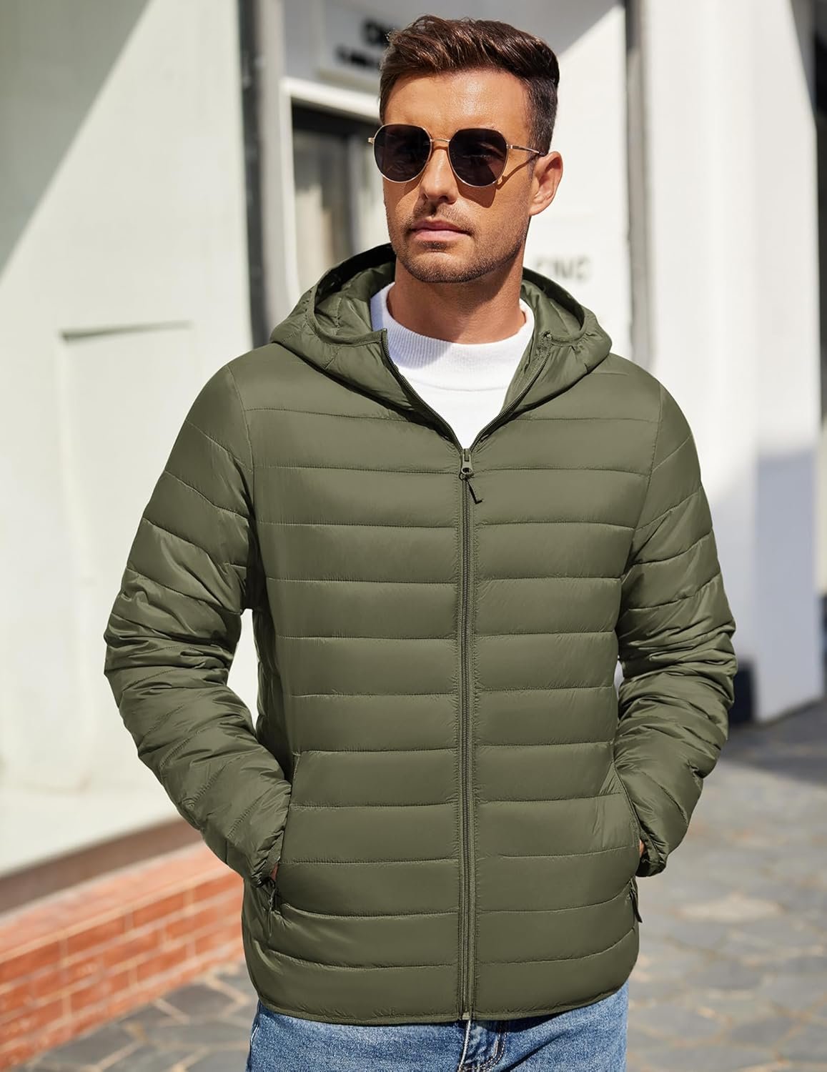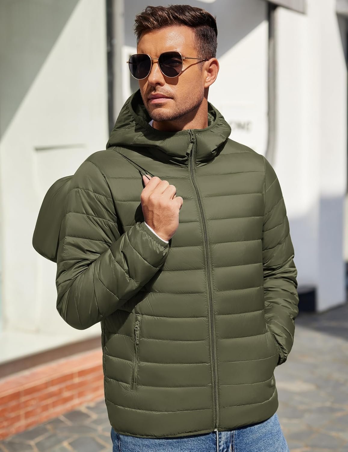 Write an article in French about: COOFANDY Mens Packable Puffer Jacket Lightweight Hooded Insu… In English