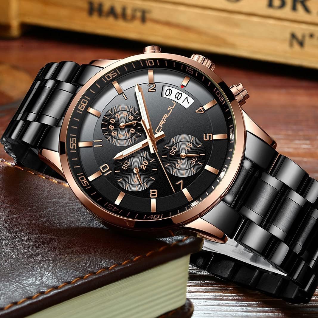 Write an article in French about: CRRJU Men’s Fashion Stainless Steel Watches Date Waterproof … In English