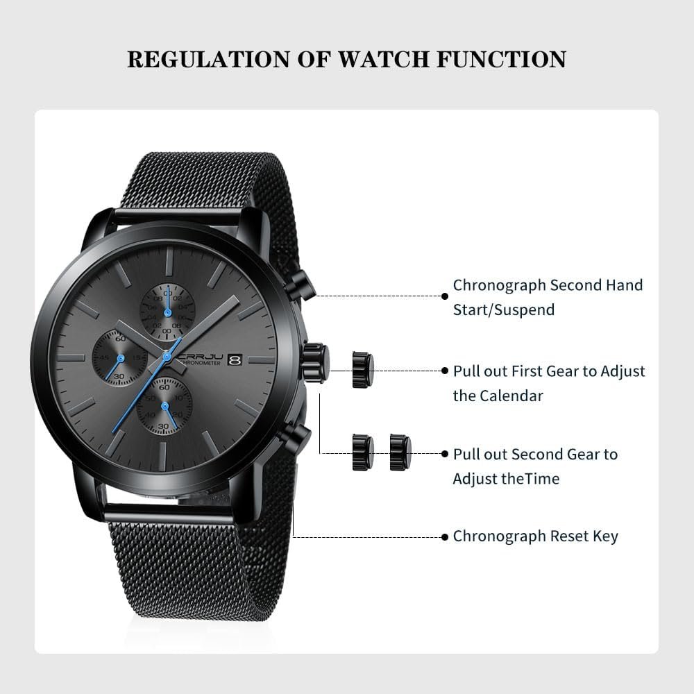 Write an article in French about: CRRJU Watches for Men Luxury Business Stainless Steel Waterp… In English