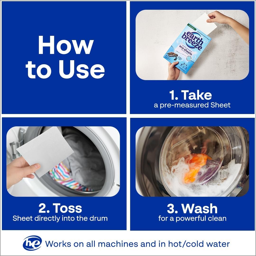 Be the first to review “Earth Breeze Laundry Detergent Sheets Fresh Scent – 60 Loads Eco Liquidless Soap – Travel-Friendly for Hot & Cold Cycles, Tackles Tough Stains & Odors – Gentle on Skin, 30 Ct”