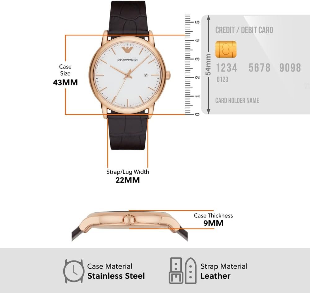 Write an article in French about: Emporio Armani Men’s Three-Hand Leather Watch In English