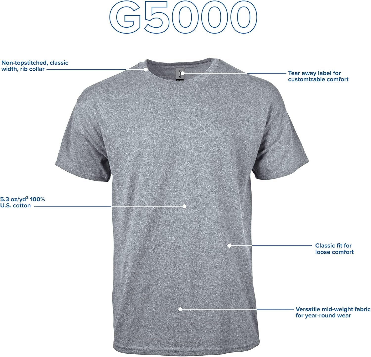 Write an article in French about: Gildan Unisex Adult Heavy Cotton T-Shirt, Style G5000, Multi… In English