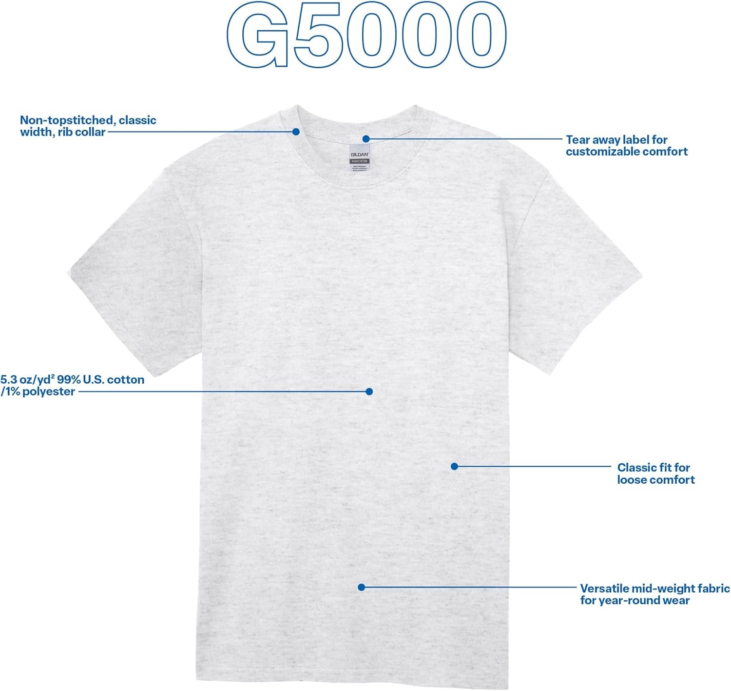 Gildan Unisex Adult Heavy Cotton T-Shirt, Style G5000, Multi…