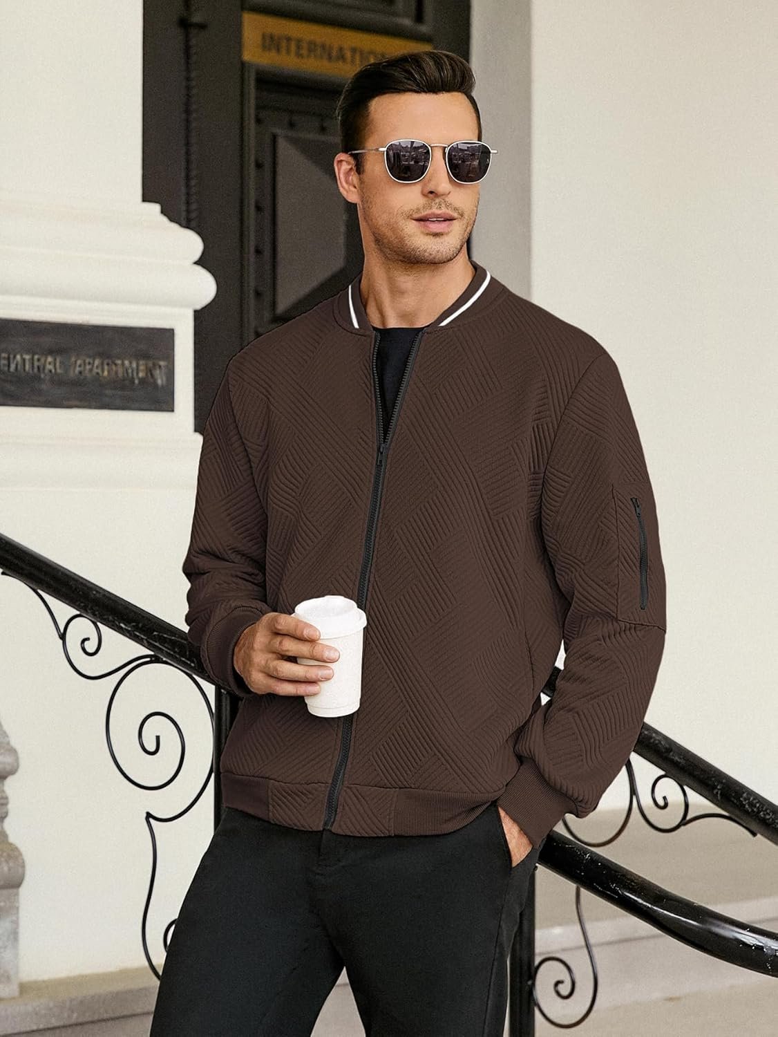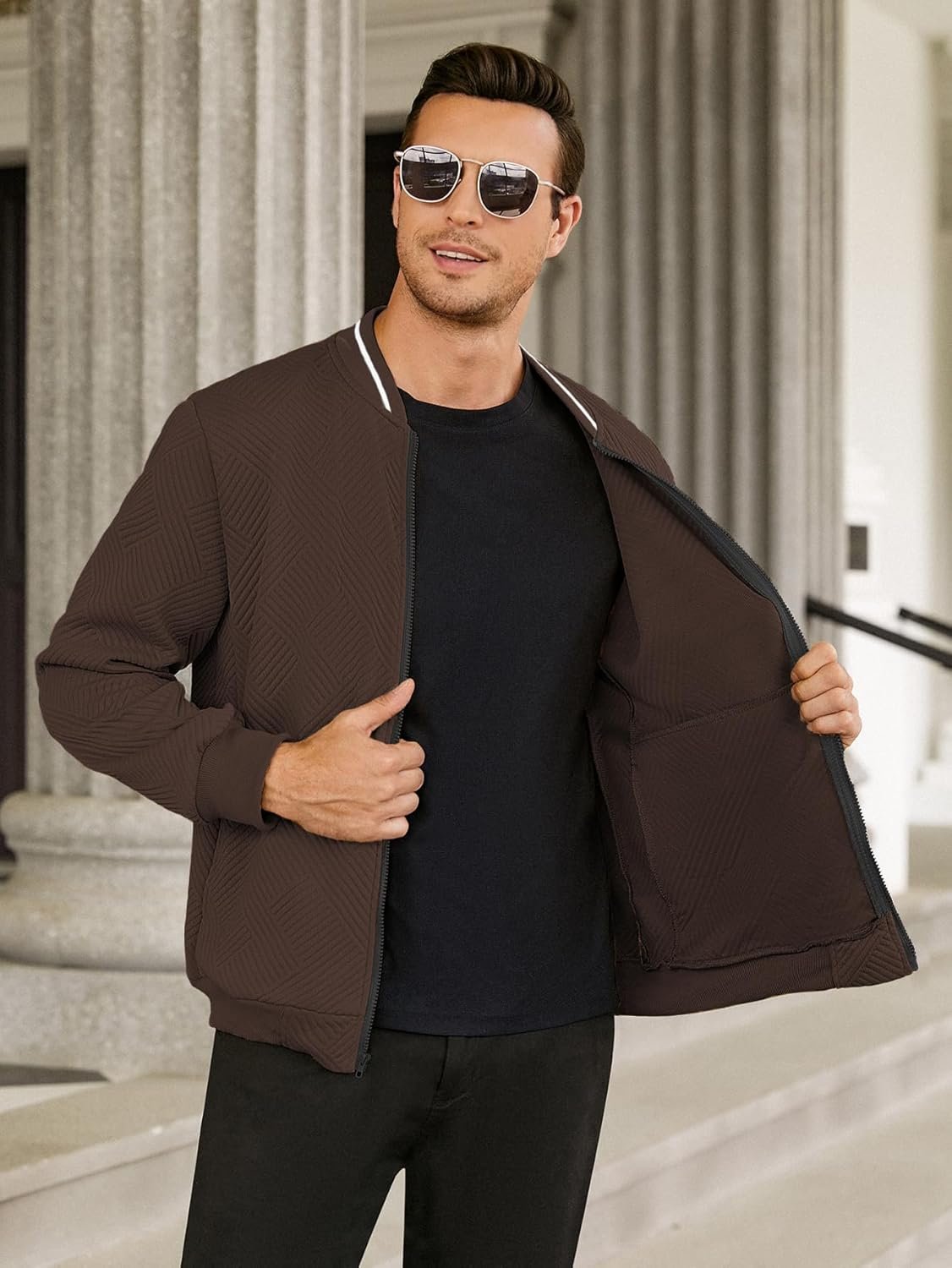 Write an article in French about: Hardaddy Men’s Lightweight Bomber Jacket Textured Casual Var… In English