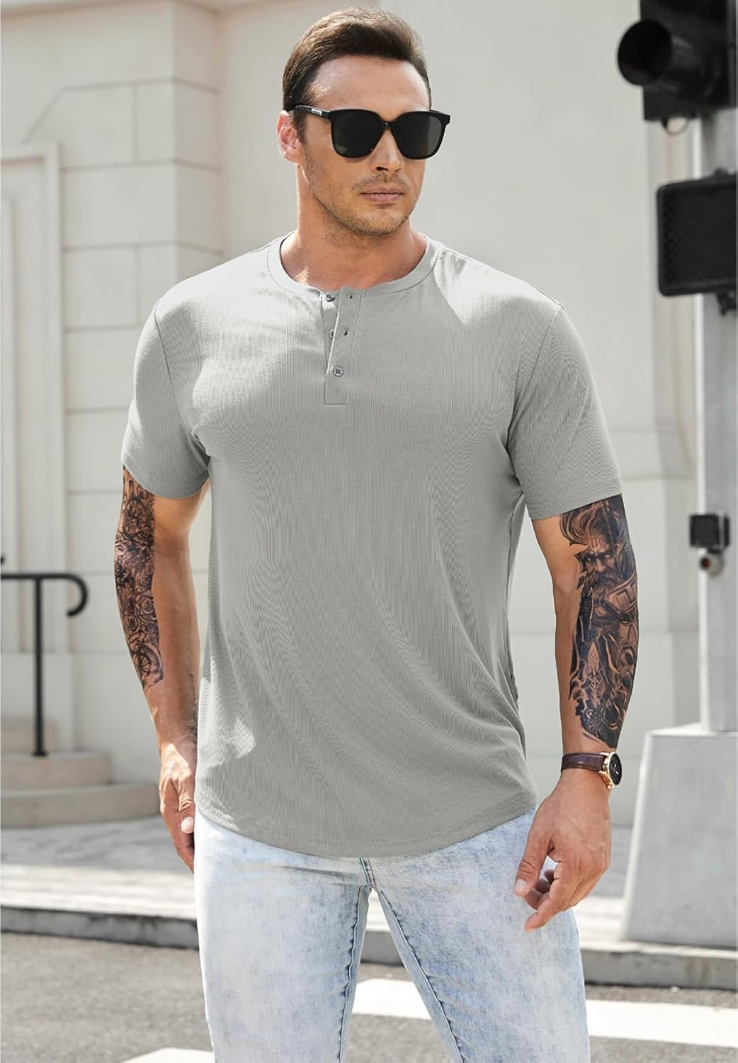 JMIERR Men’s Muscle Slim Henley Shirts Crewneck Longline T-S…