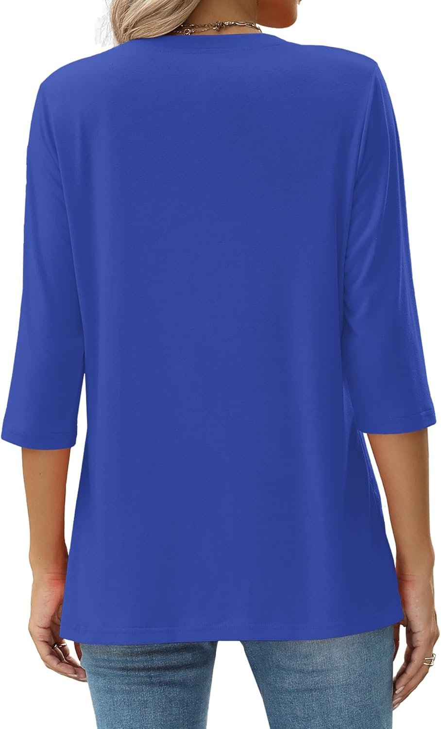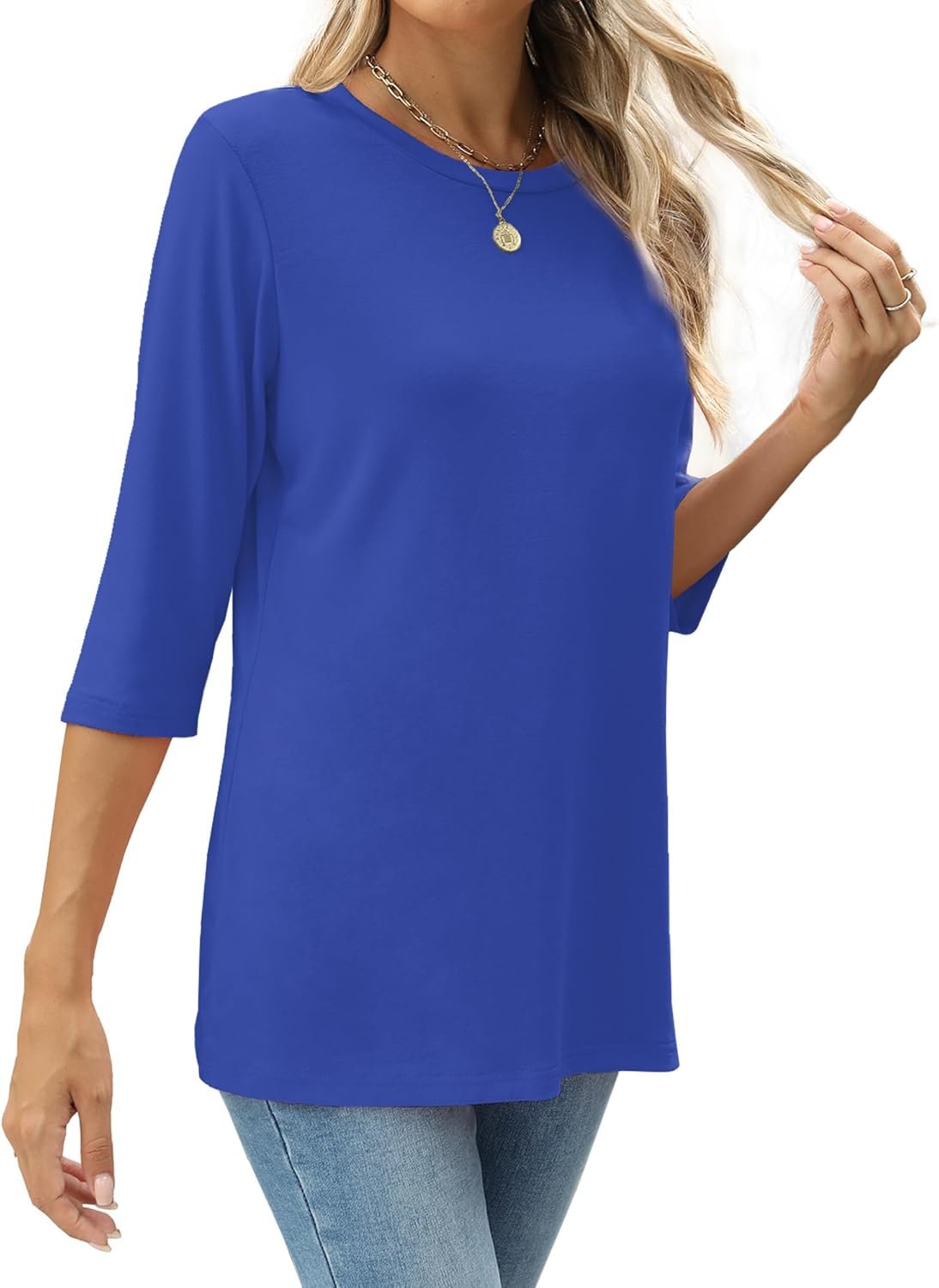 Write an article in French about: JomeDesign Womens Tops 3/4 Sleeve Shirts Round Neck Loose Ca… In English