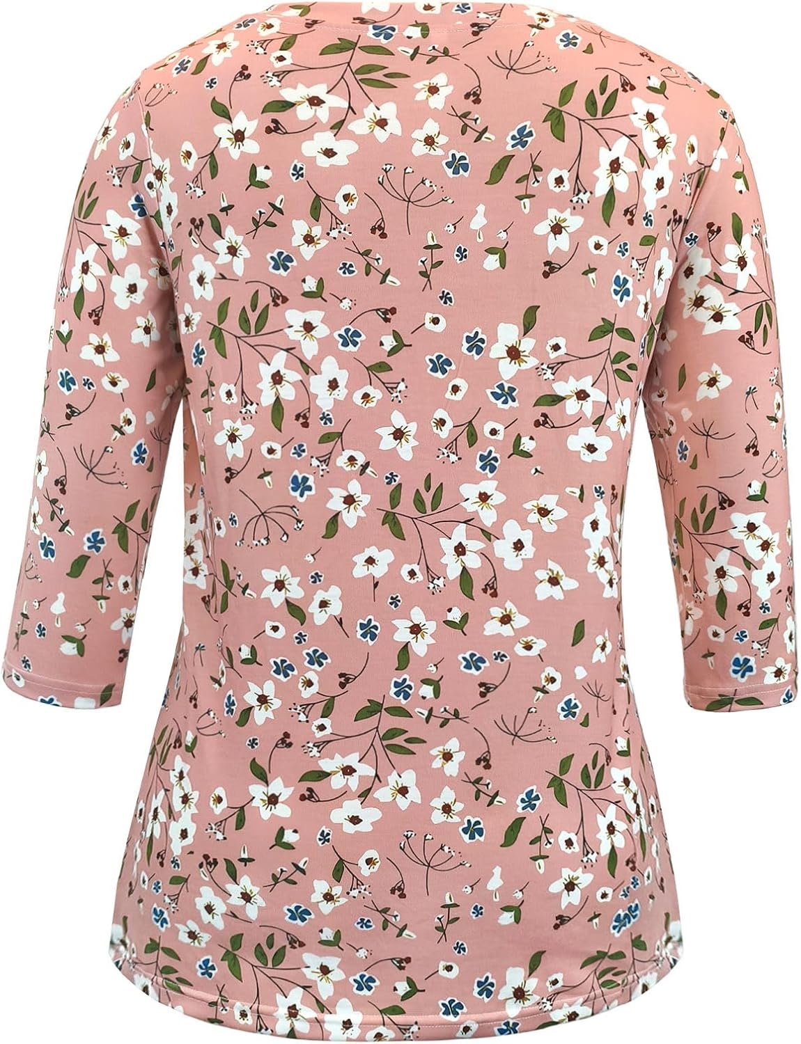 JomeDesign Womens Tops 3/4 Sleeve Shirts Round Neck Loose Ca…