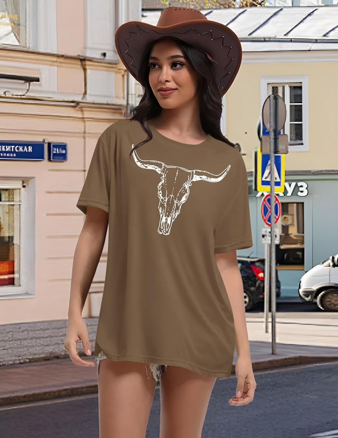 Write an article in French about: LETSEE Women’s Cow Skull Western Rodeo Tops Shirt Boho Cowgi… In English