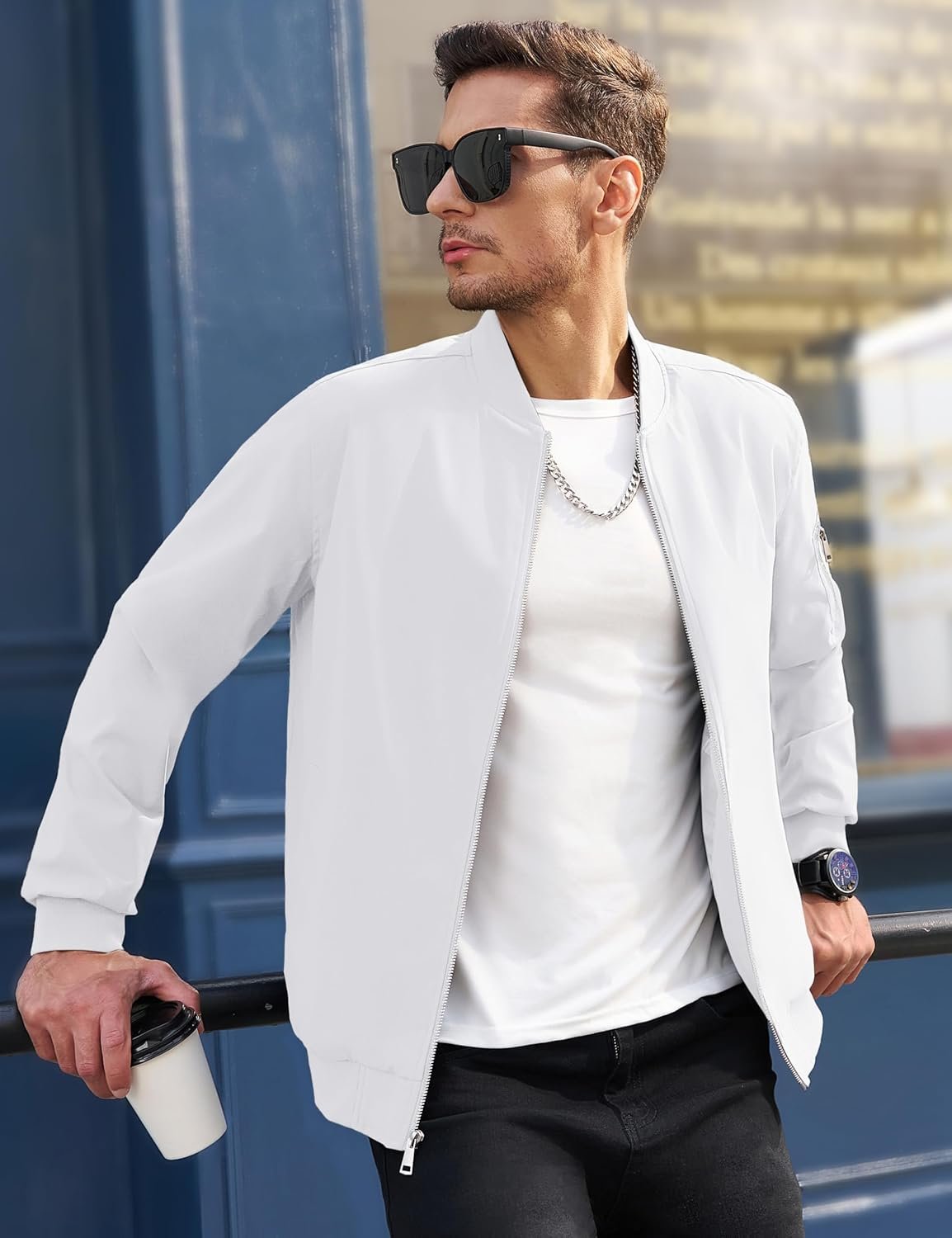 Write an article in French about: MAGCOMSEN Men’s Bomber Jacket Lightweight Casual Windbreaker… In English