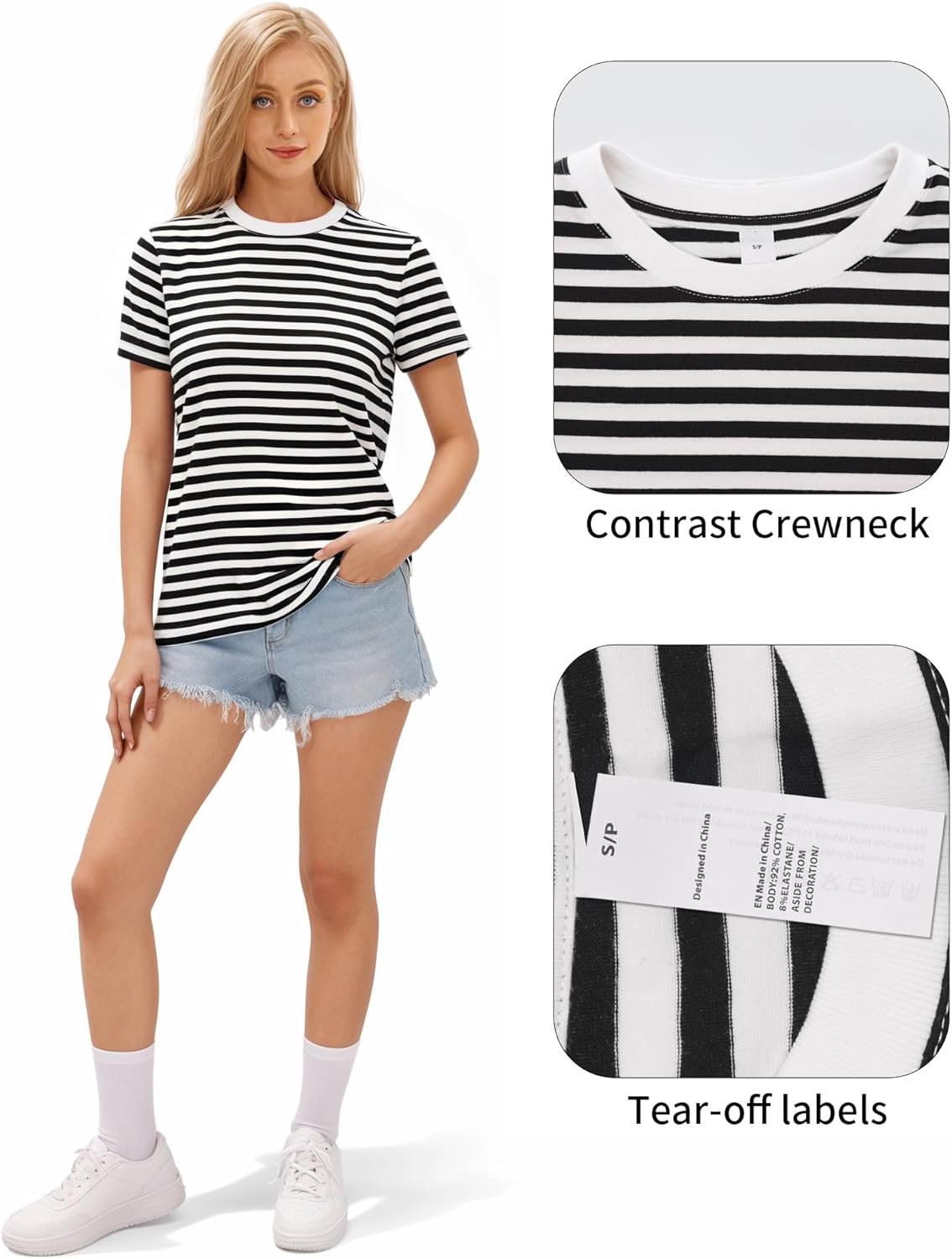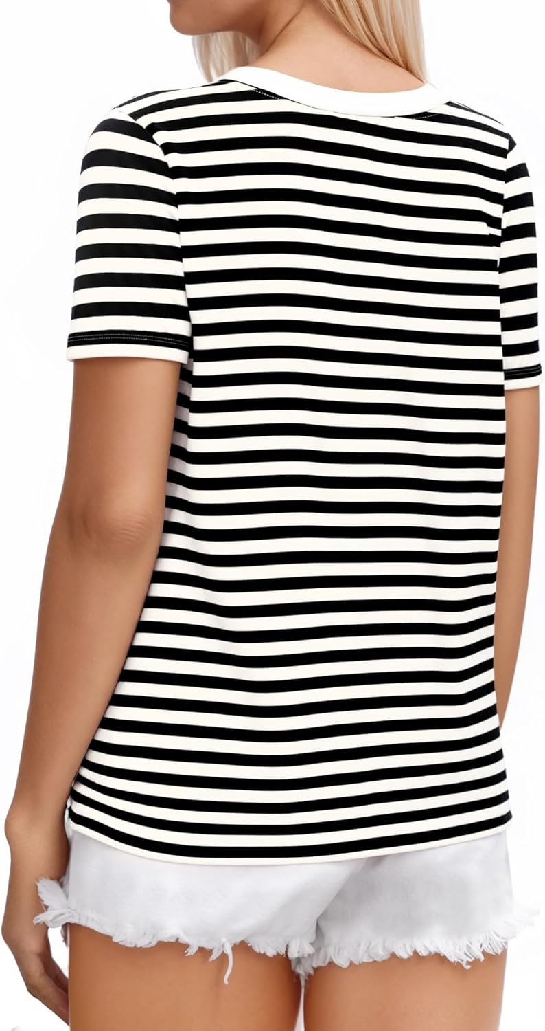 Write an article in French about: MANGOPOP Short Sleeve Striped Color Block Shirt for Women Re… In English