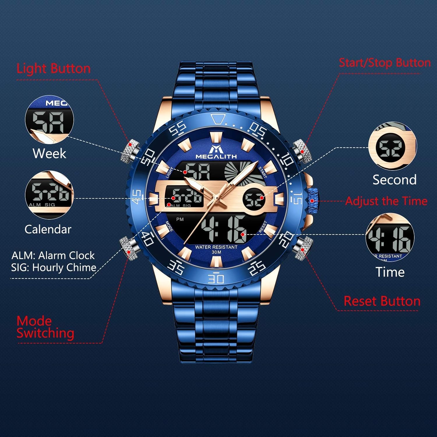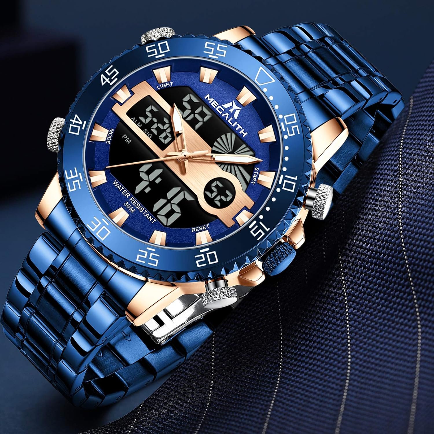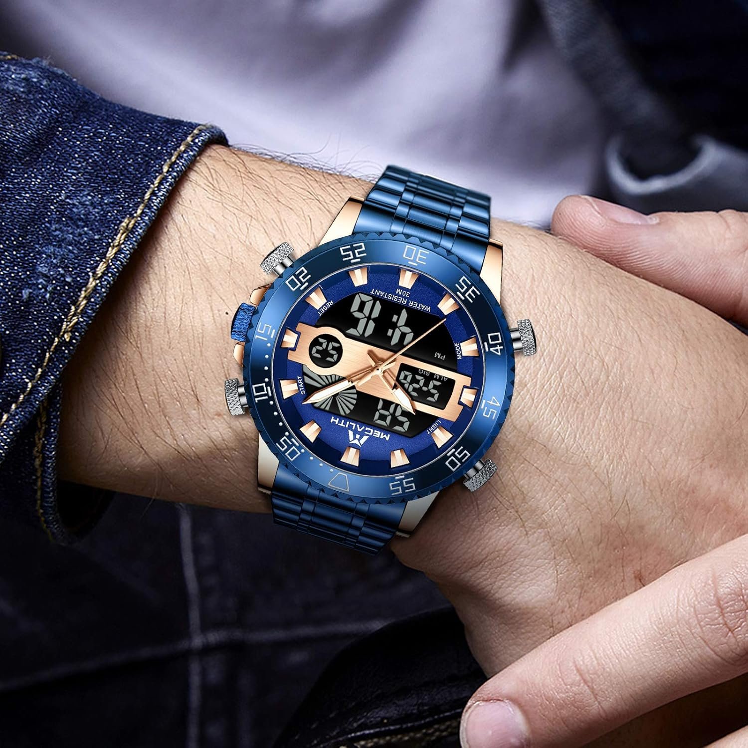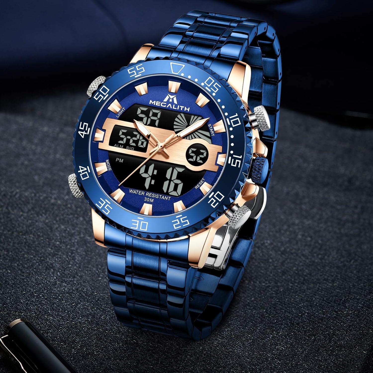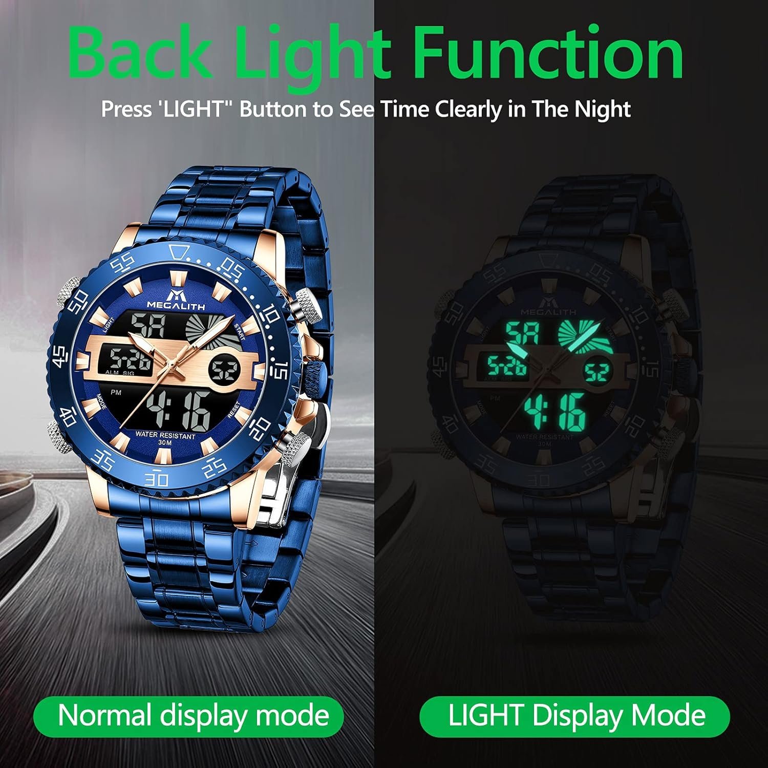 MEGALITH Mens Watch Digital Waterproof Stainless Steel Big F…