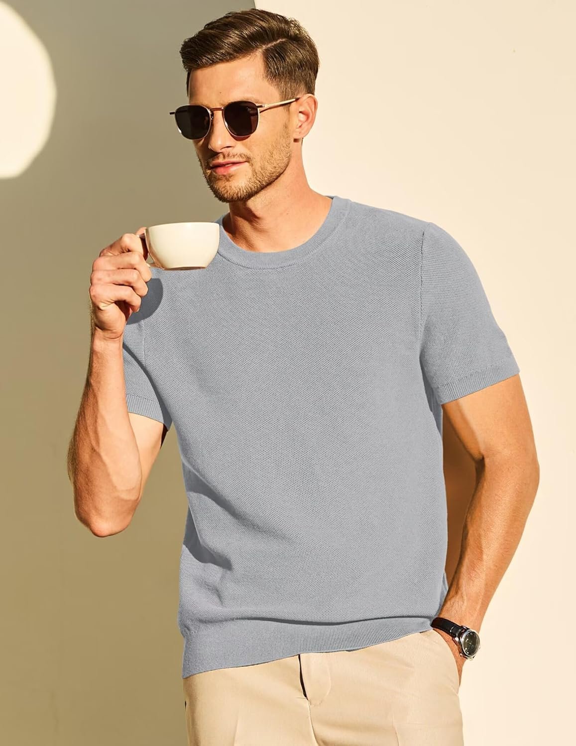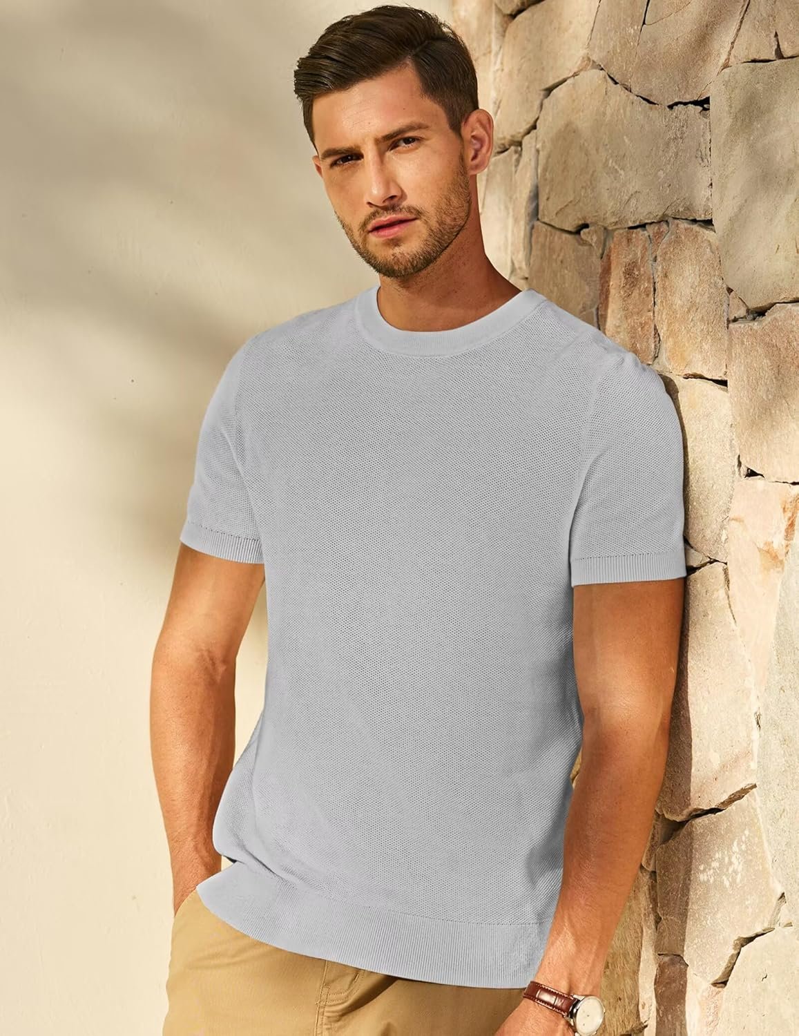 Write an article in French about: Mens 100% Cotton T-Shirts Casual Short Sleeve Crewneck Knit … In English