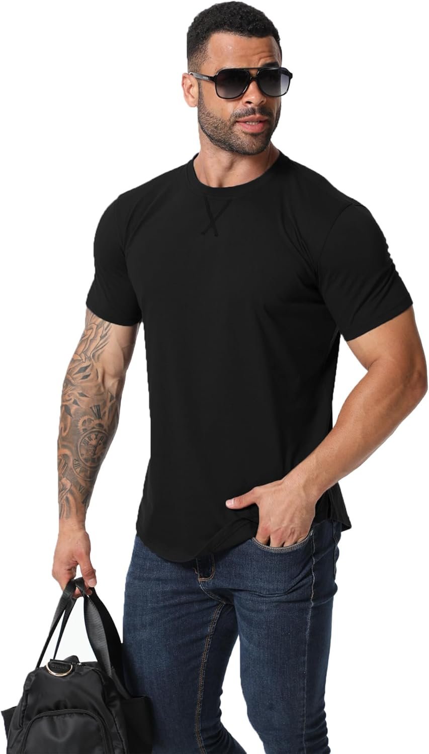 Write an article in French about: Mens 3 Pack Plain Cotton Shirts Short Sleeve Casual Crew Nec… In English