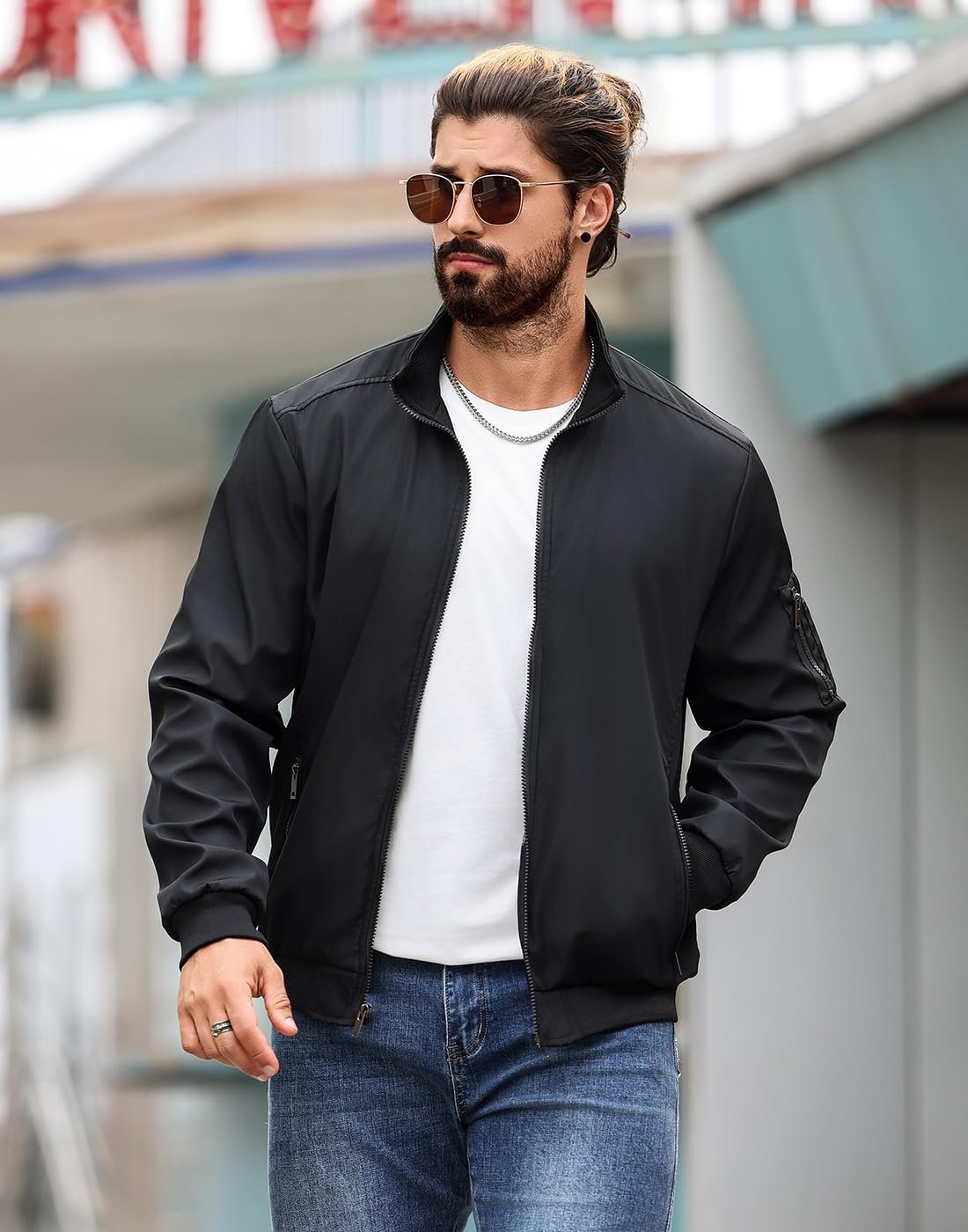 Write an article in French about: Men’s Bomber Jacket Lightweight Casual Windbreaker Jackets Z… In English