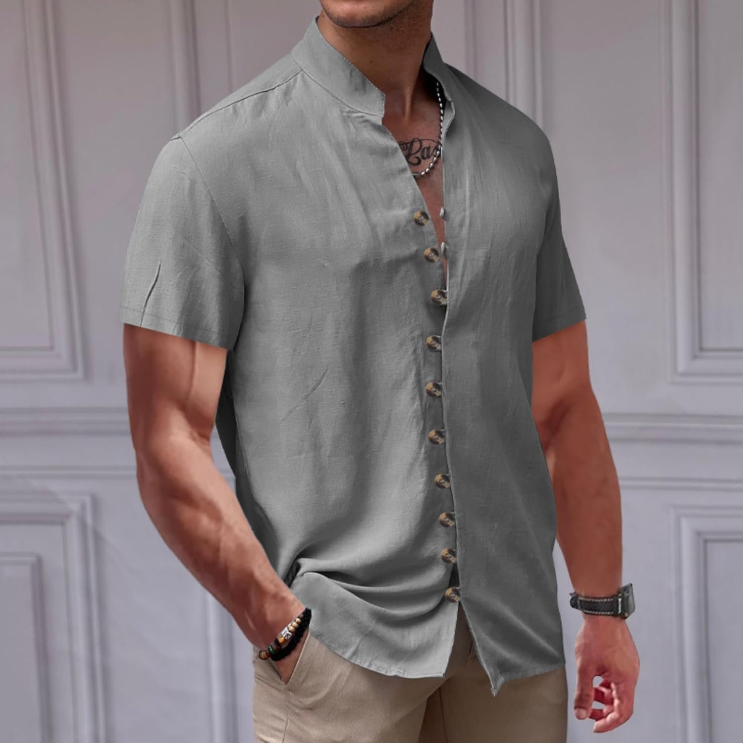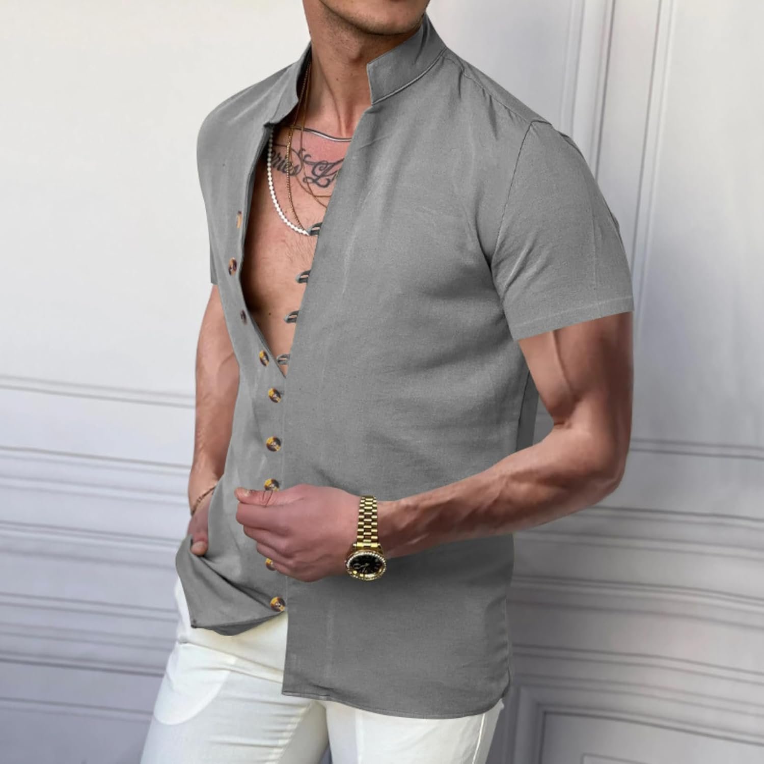 Write an article in French about: Men’s Button Down Vintage Shirt Short Sleeve Collar Dress Sh… In English