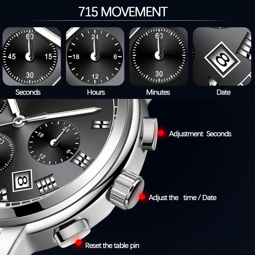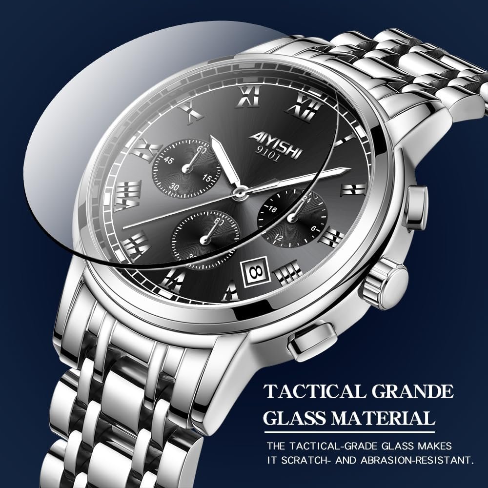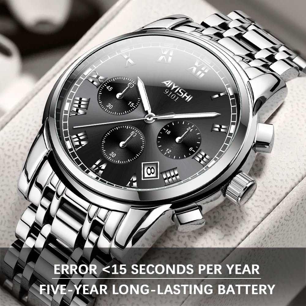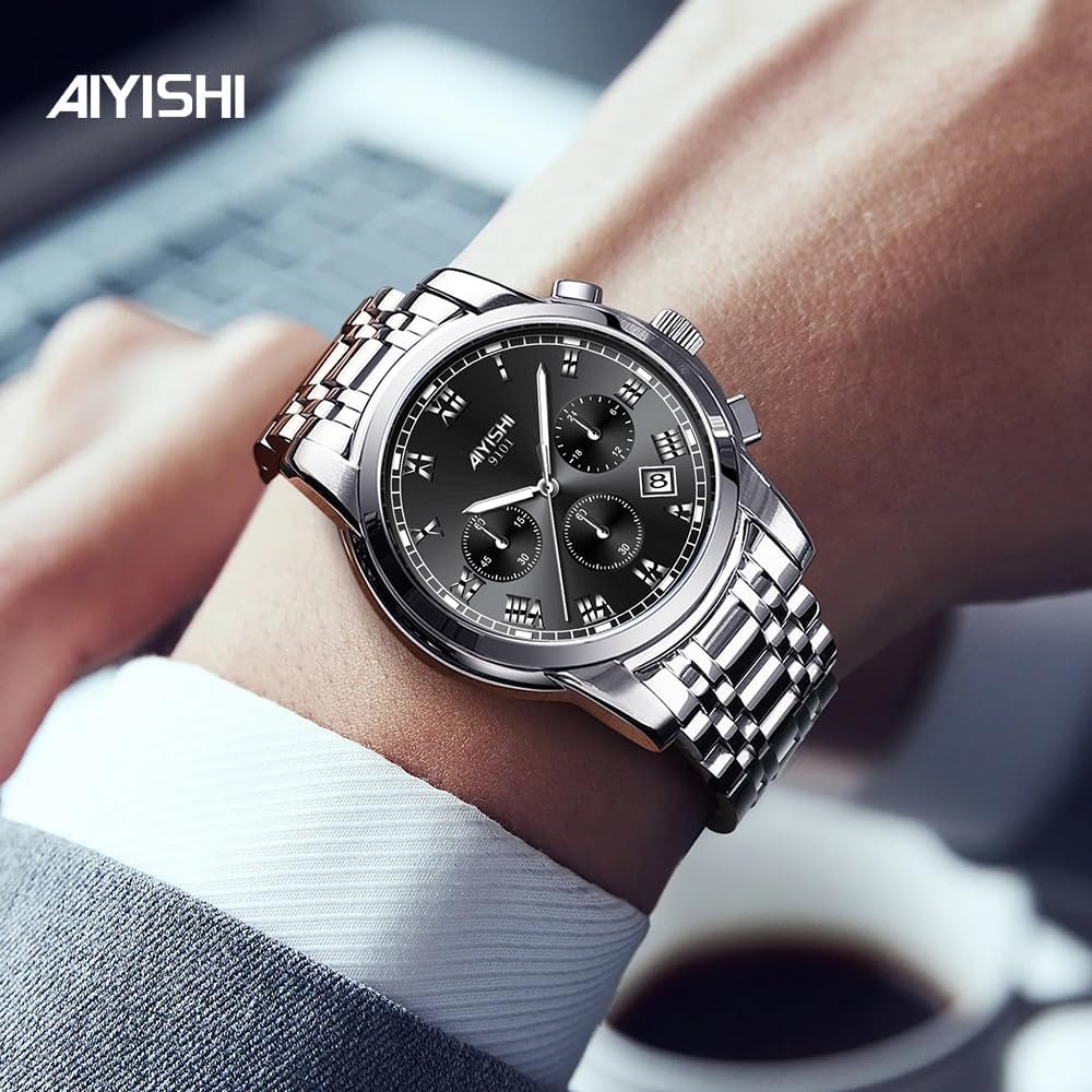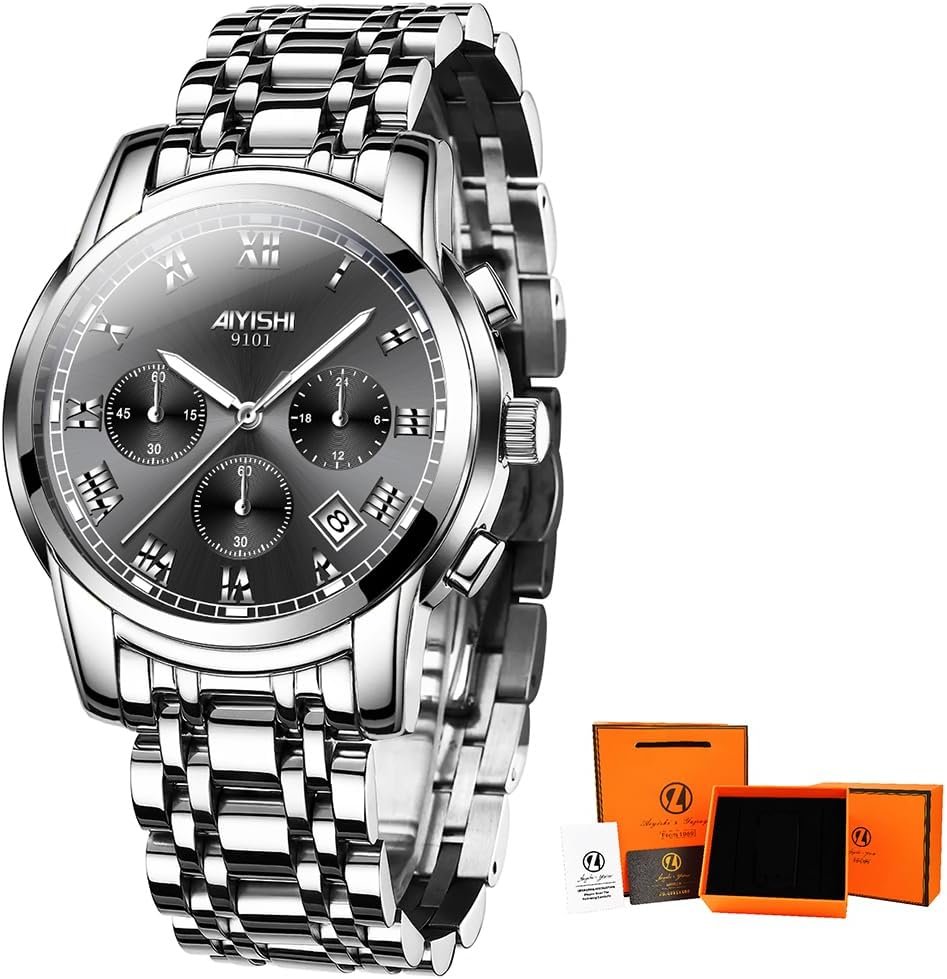 Write an article in French about: Men’s Chronograph Stainless Steel Watch – Sapphire Crystal G… In English