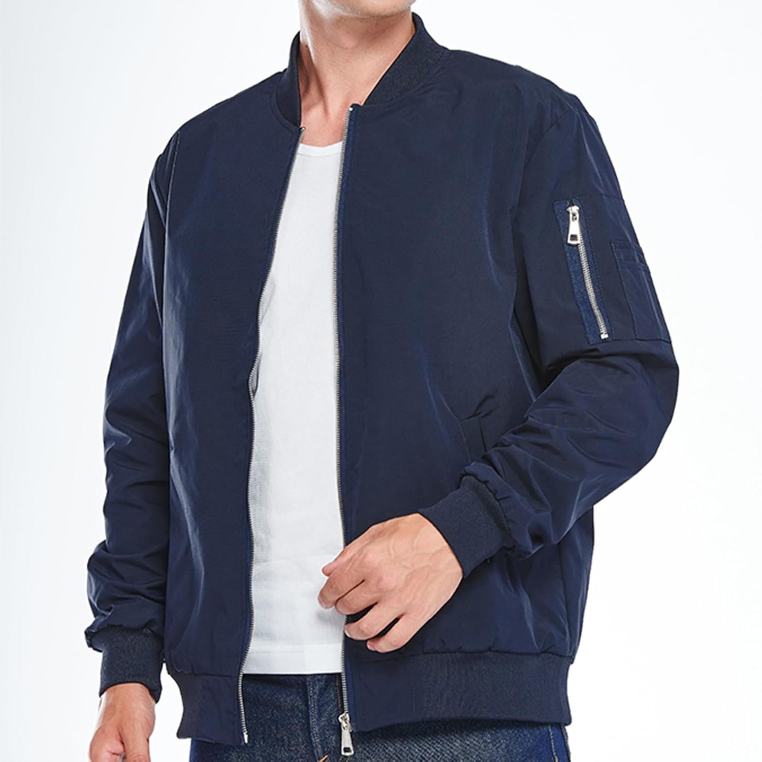 Write an article in French about: Mens Lightweight Bomber Jacket Casual Windbreaker Zip Up Coa… In English