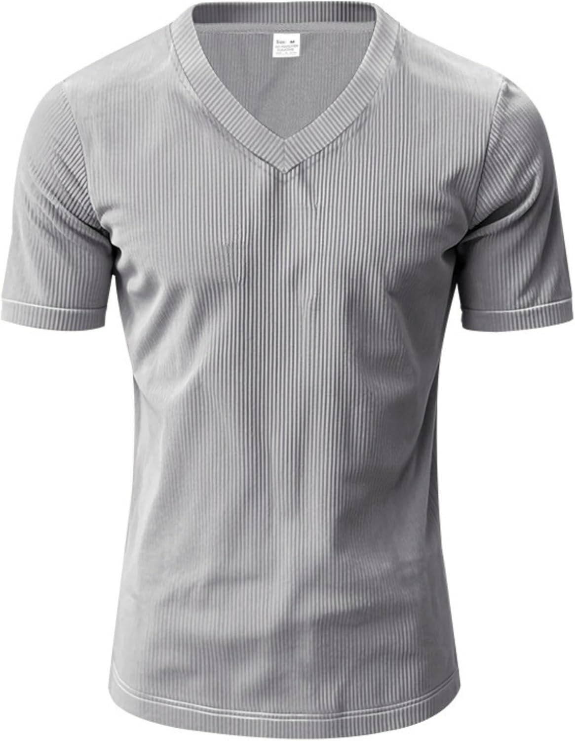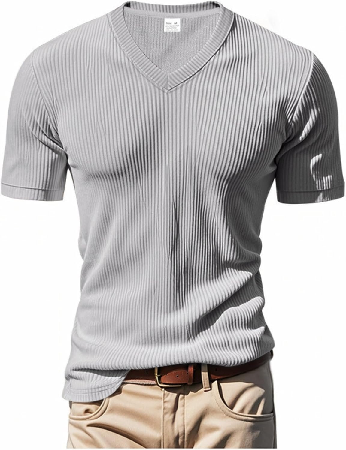 Write an article in French about: Men’s Short Sleeve T-Shirts Corduroy V Neck Ribbed Knit Stre… In English