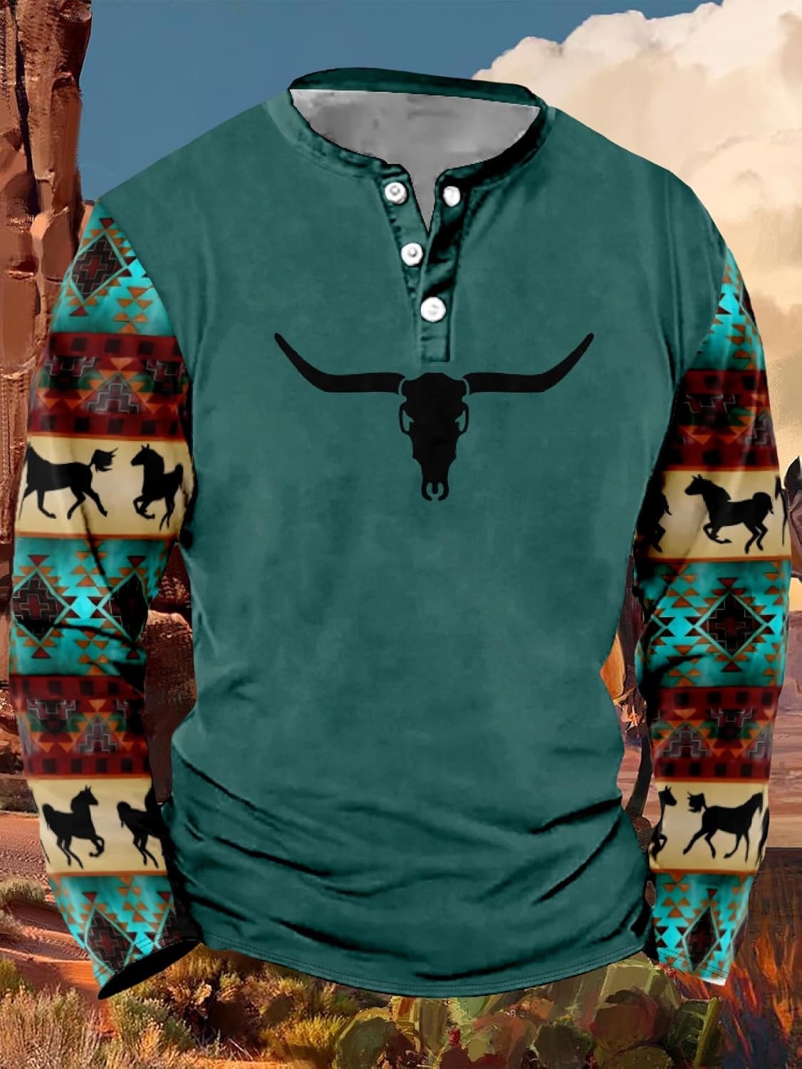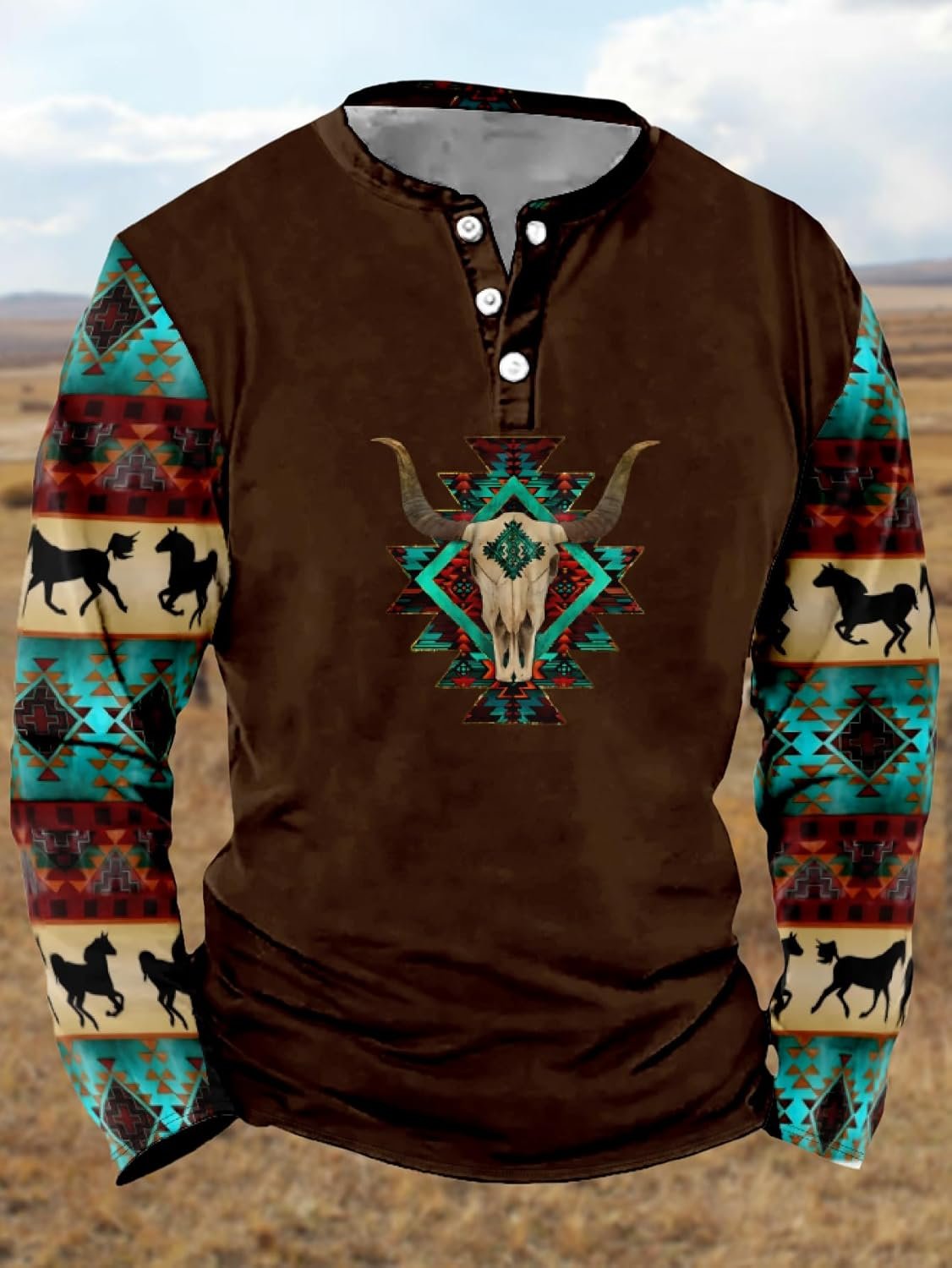 Mens Western Shirts Long Sleeve Aztec Button Down Henley Shi…