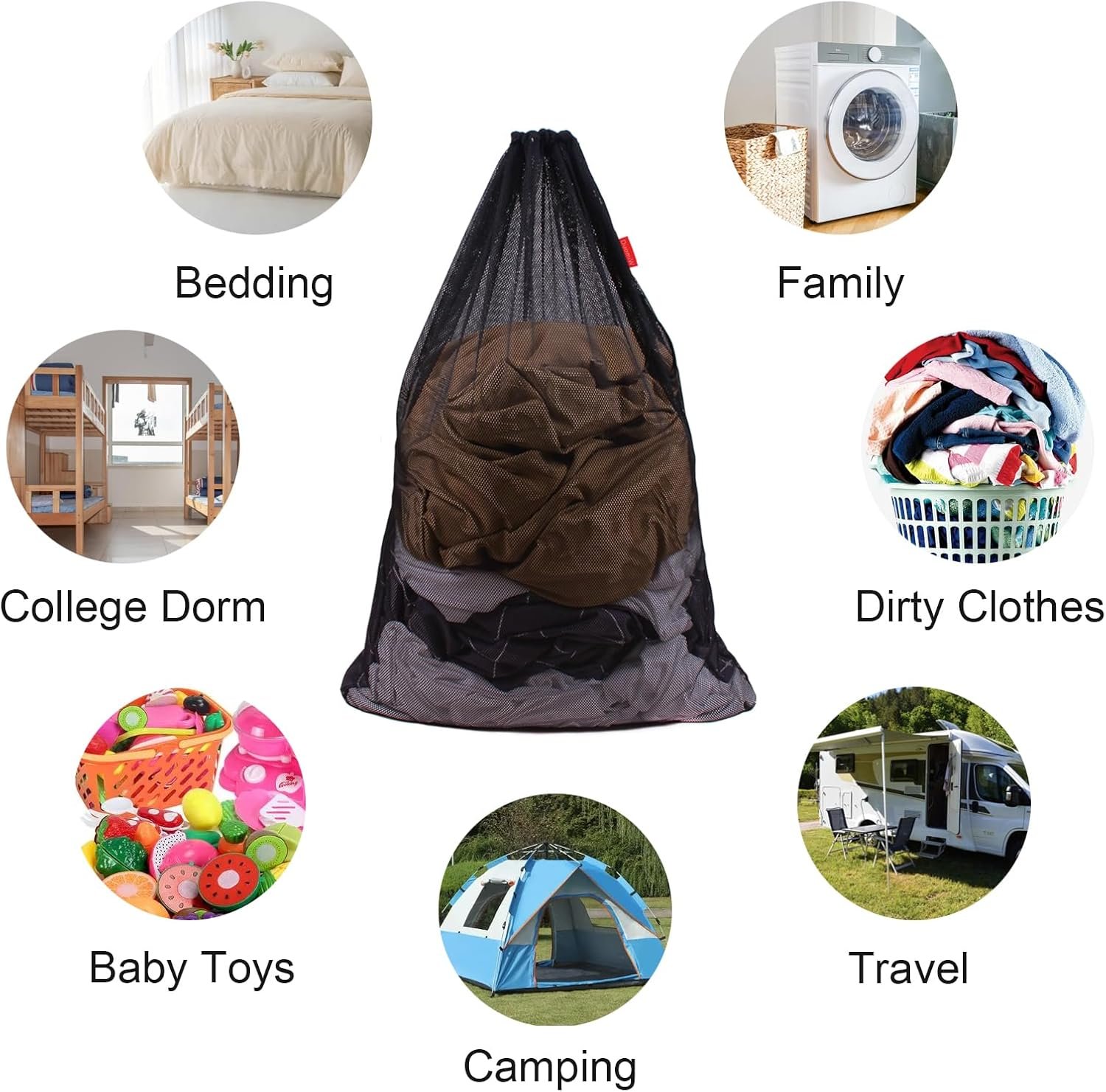 Mesh Laundry Bag Heavy Duty Drawstring Bag, Factories, College, Dorm, Travel and Apartment Dwellers, 24 x 36 Inches, 2 Pack, Black