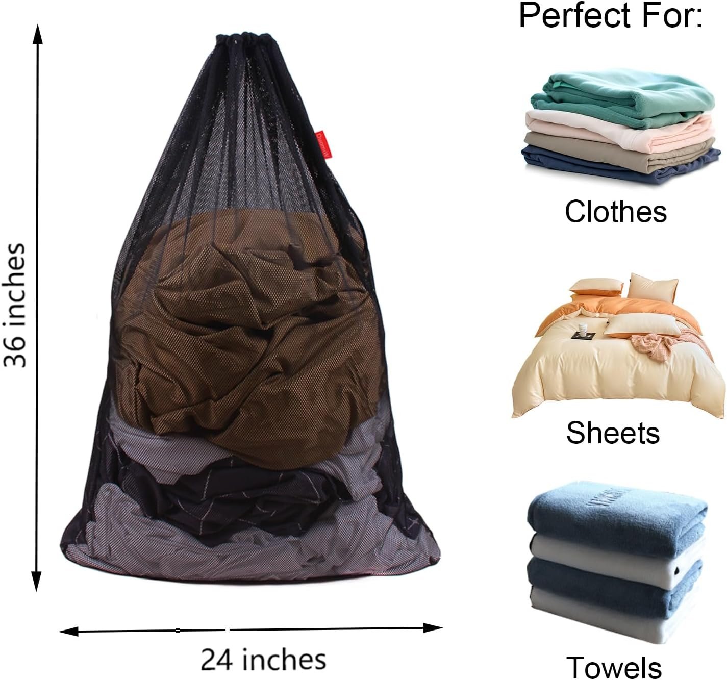 Size: 2pcs black bags(36 * 24 inches)This heavy-duty mesh laundry bag is designed to provide you with a one-week laundry service