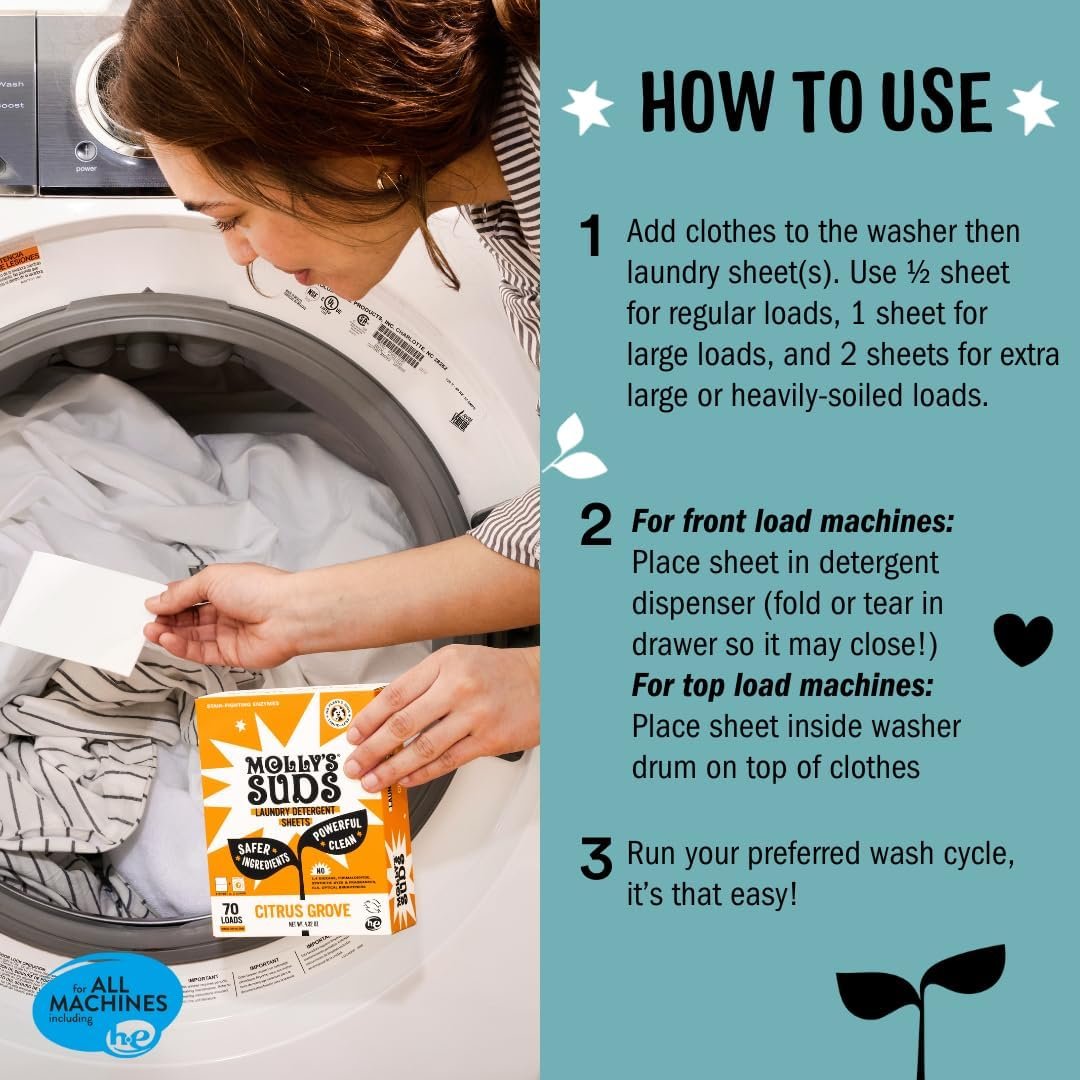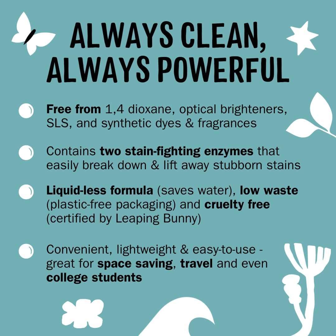 Molly’s Suds Laundry Detergent Sheets | Gentle on Sensitive Skin, Powerful Bio-Based Enzymes, Stain-Fighting | Liquidless & Plastic-Free Packaging | 70 Loads (Unscented)