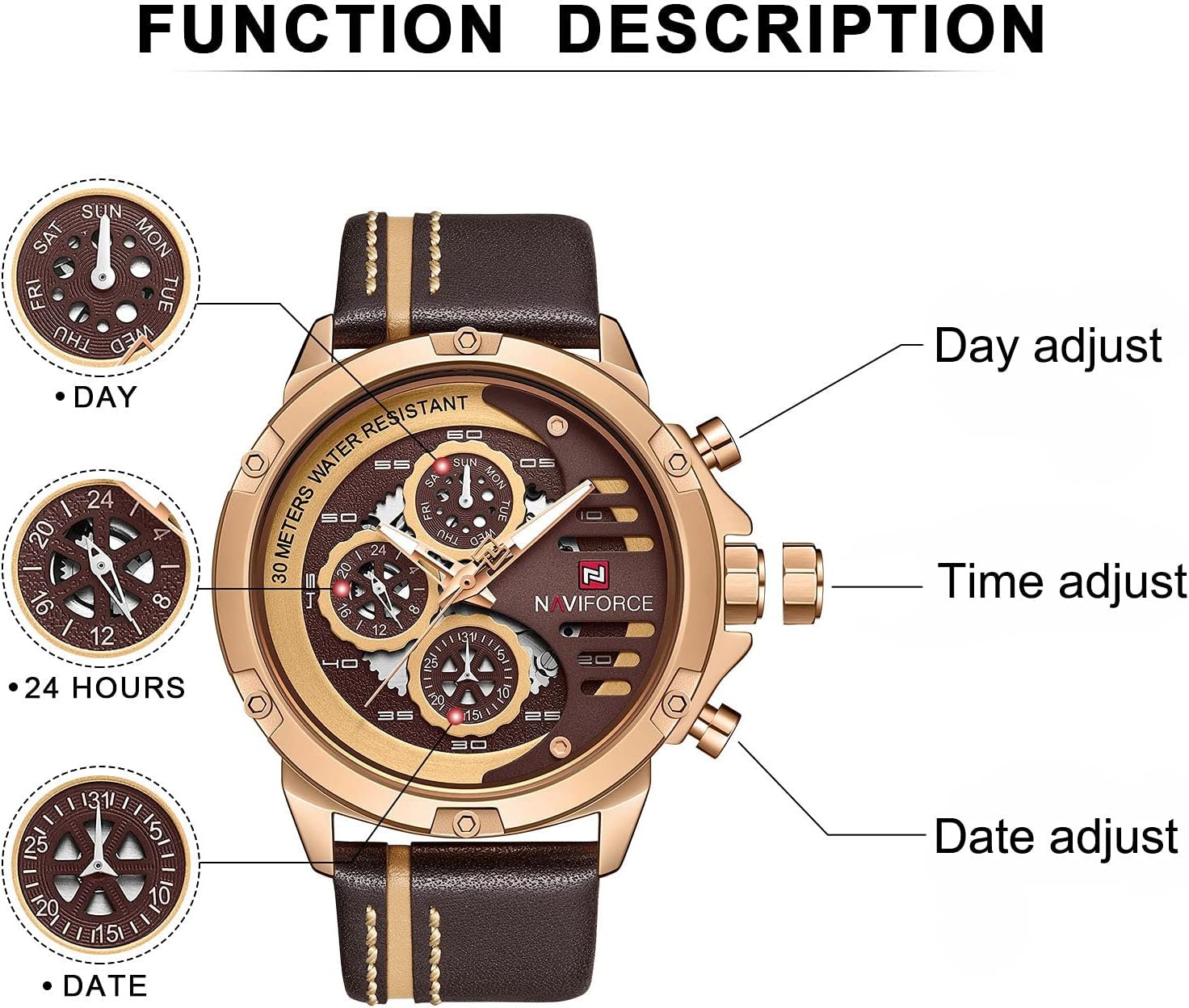 Write an article in French about: NAVIFORCE Sport Military Watches for Men Waterproof Watch An… In English