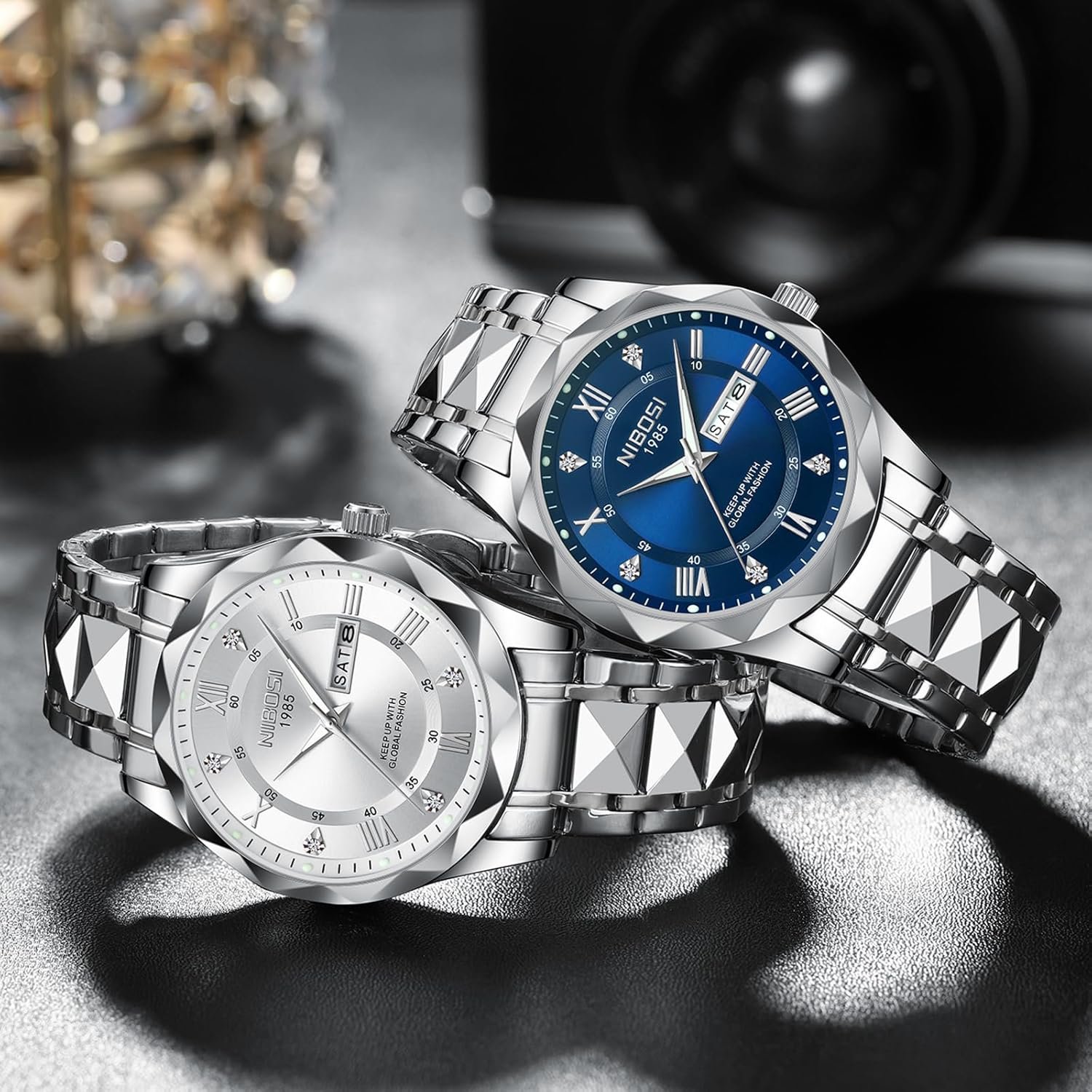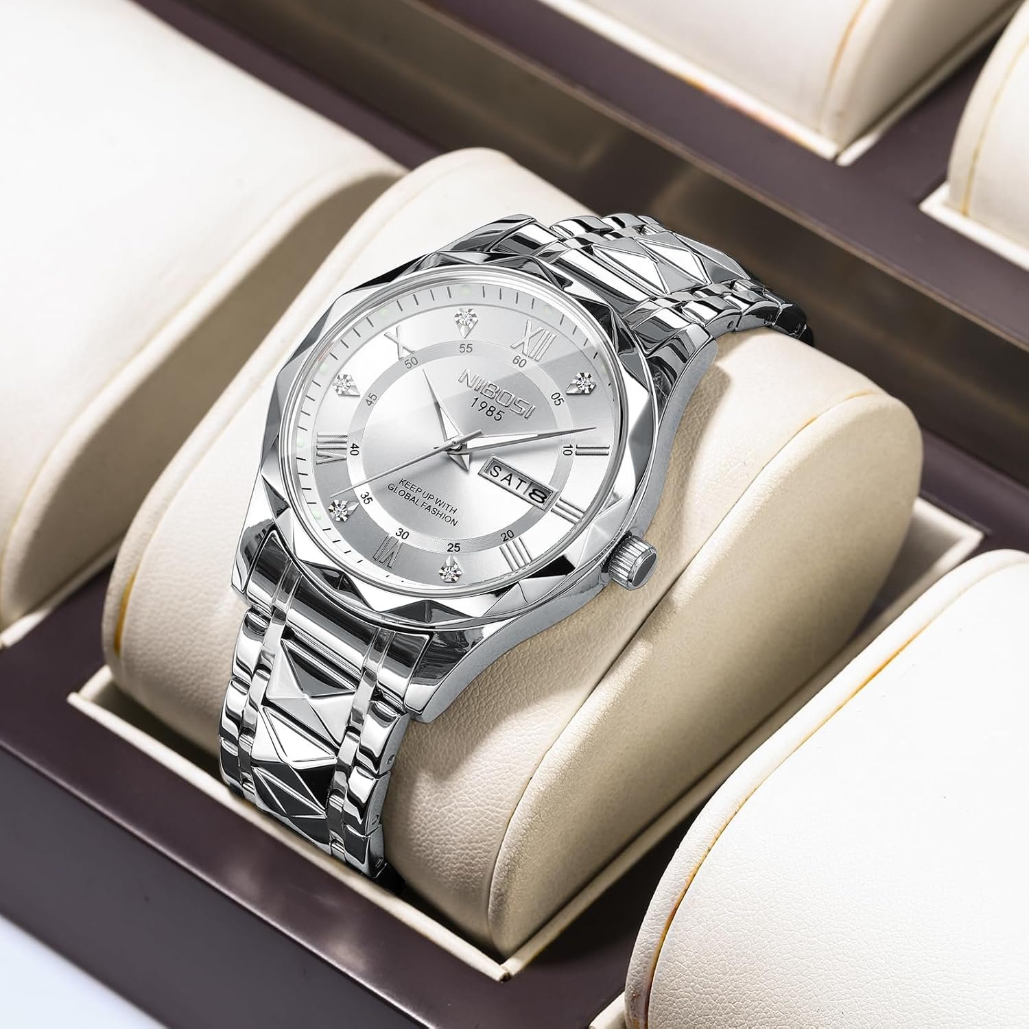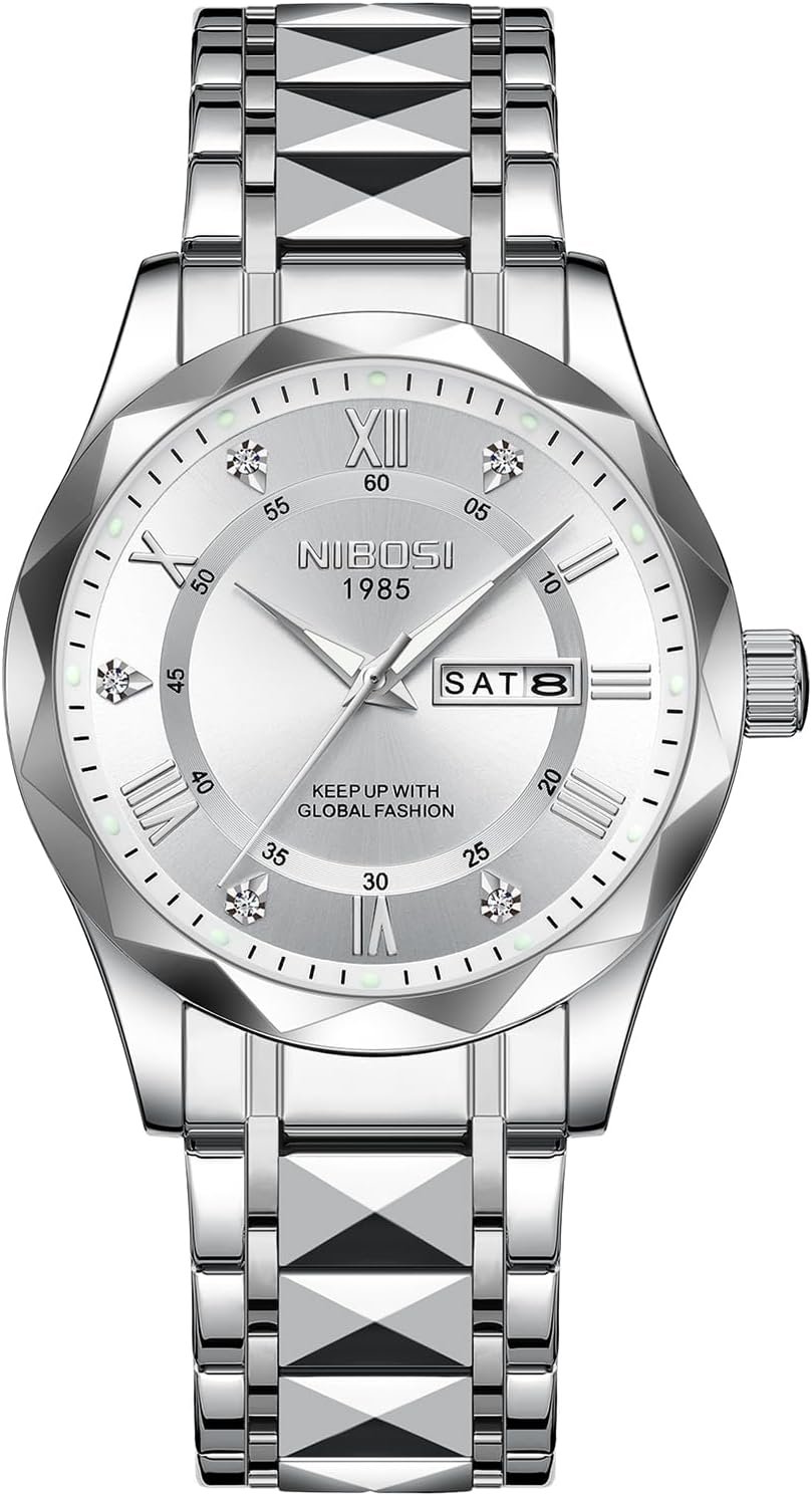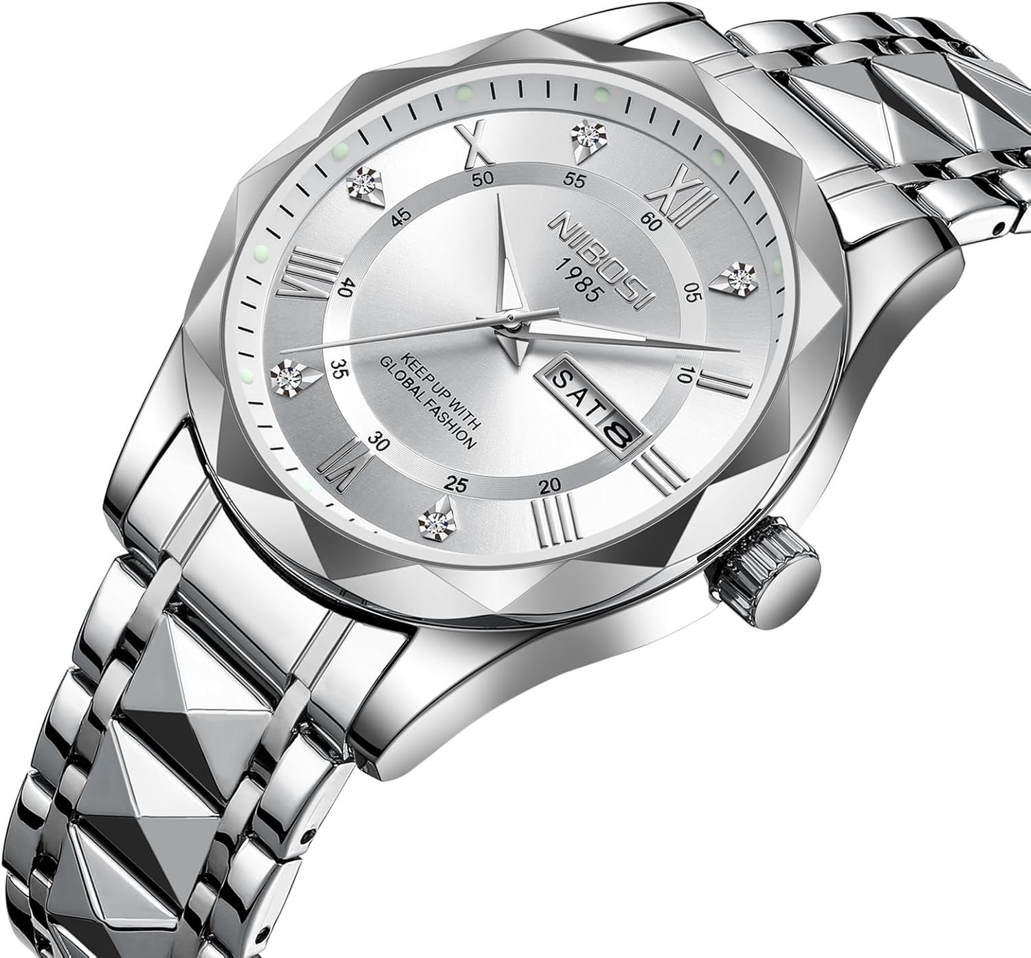 Write an article in French about: NIBOSI Men’s Analog Quartz Watch with Day-Date, Diamond Mark… In English