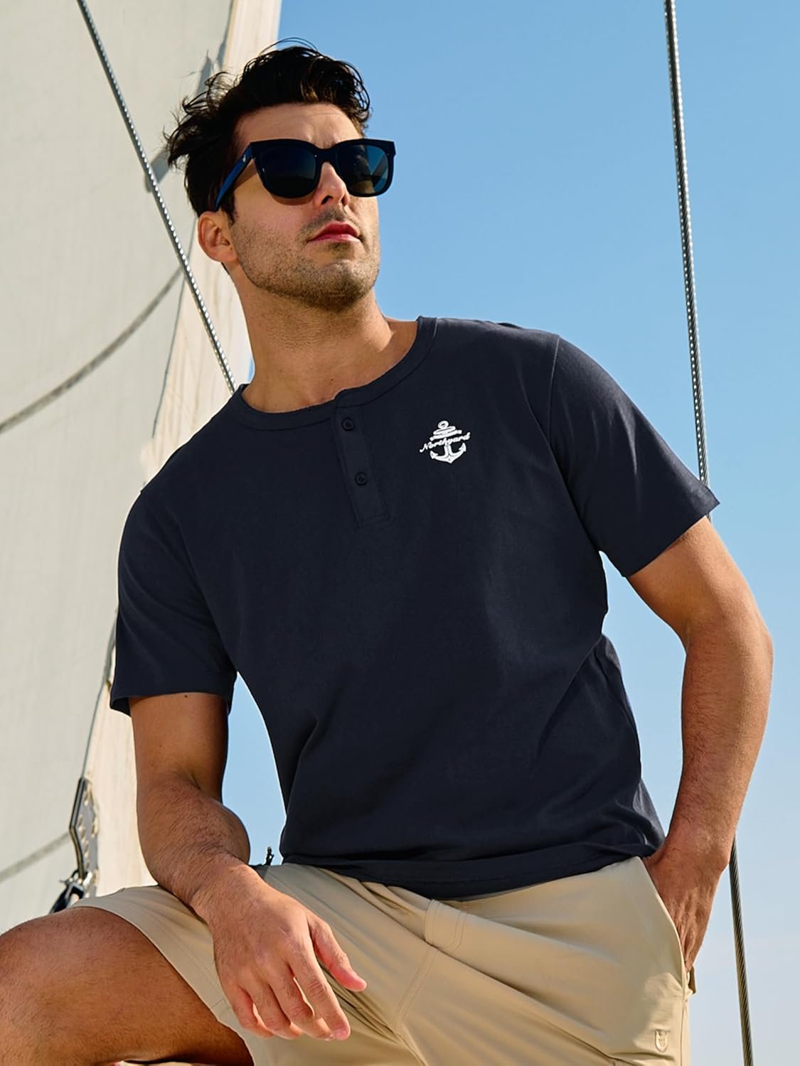 Write an article in French about: NORTHYARD Men’s Cotton Henley Shirts Casual Workout T-Shirts… In English